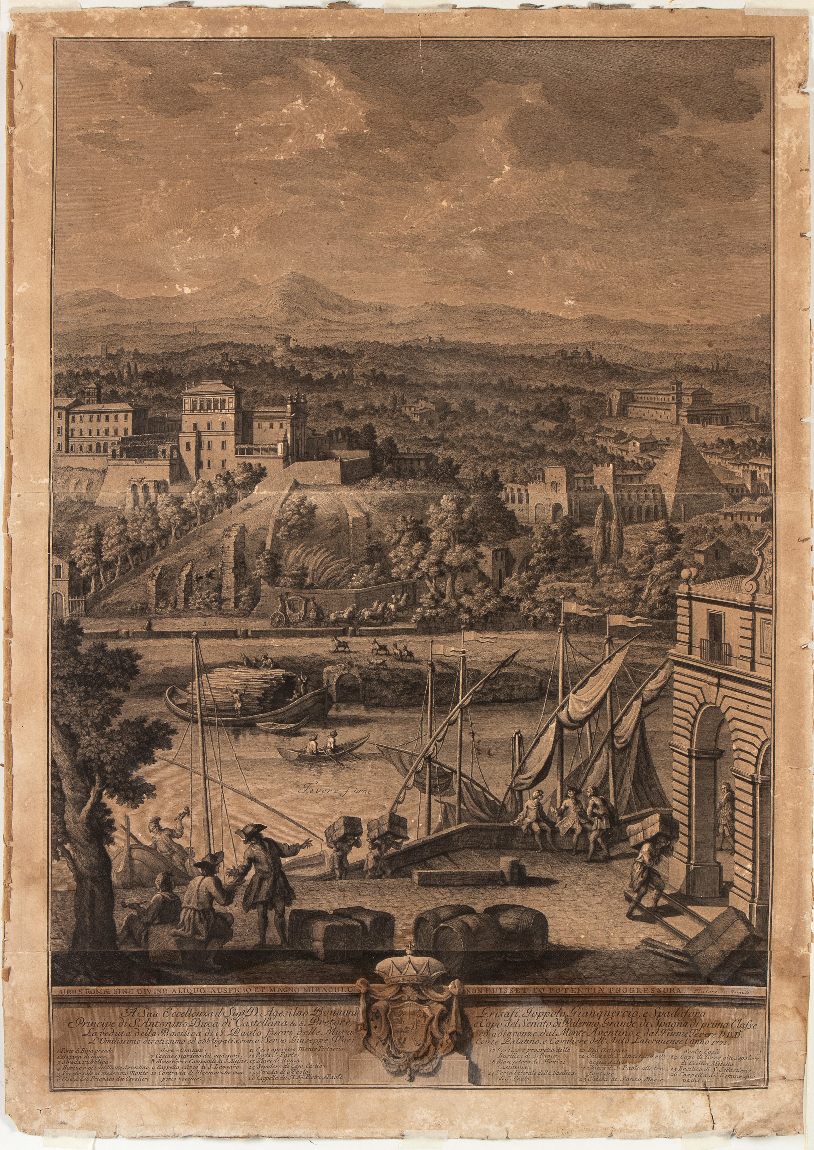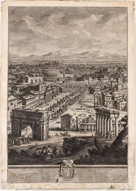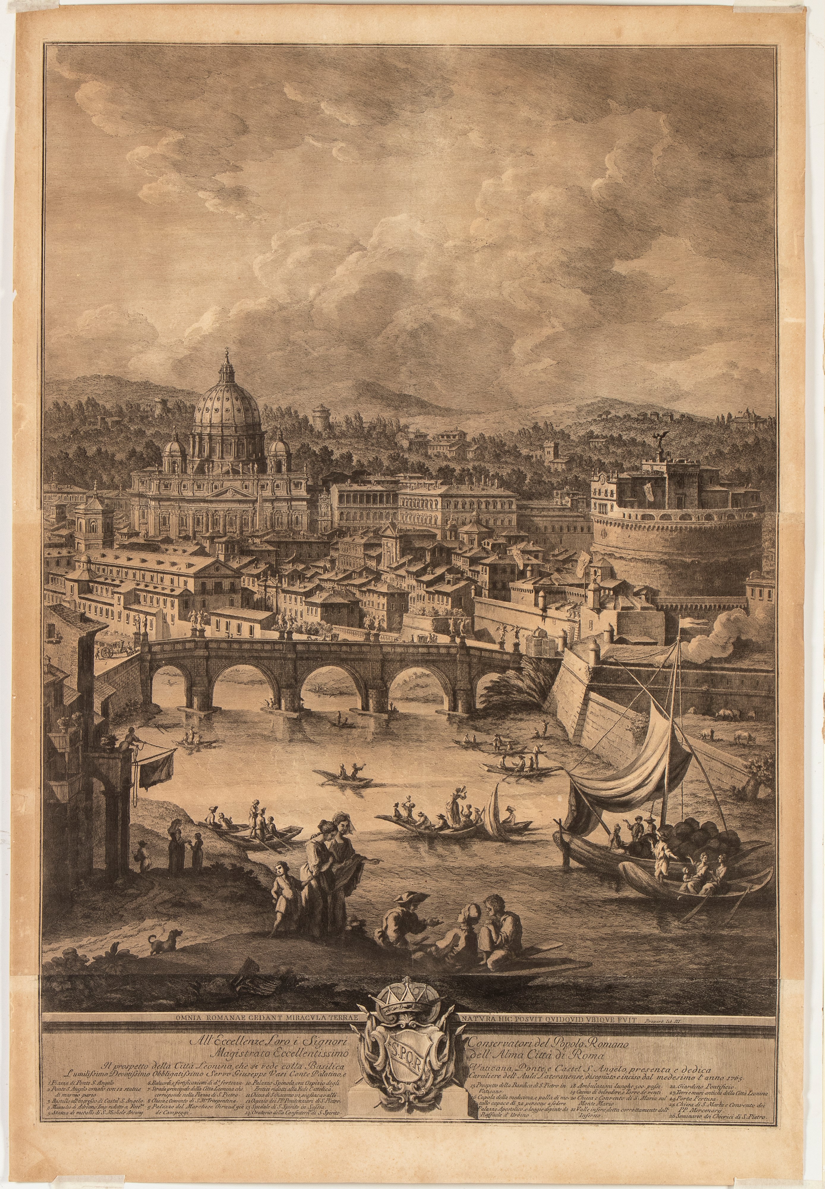 Lotto di quattro incisioni: Il Prospetto della Città Leonina, che si vede colla Basilica Vaticana, Ponte, e Castel S. Angelo | La veduta della Basilica di S. Paolo fuori delle Mura | Le rovine delle antiche magnificenze di Roma | La veduta della Basilica di S. Maria Maggiore