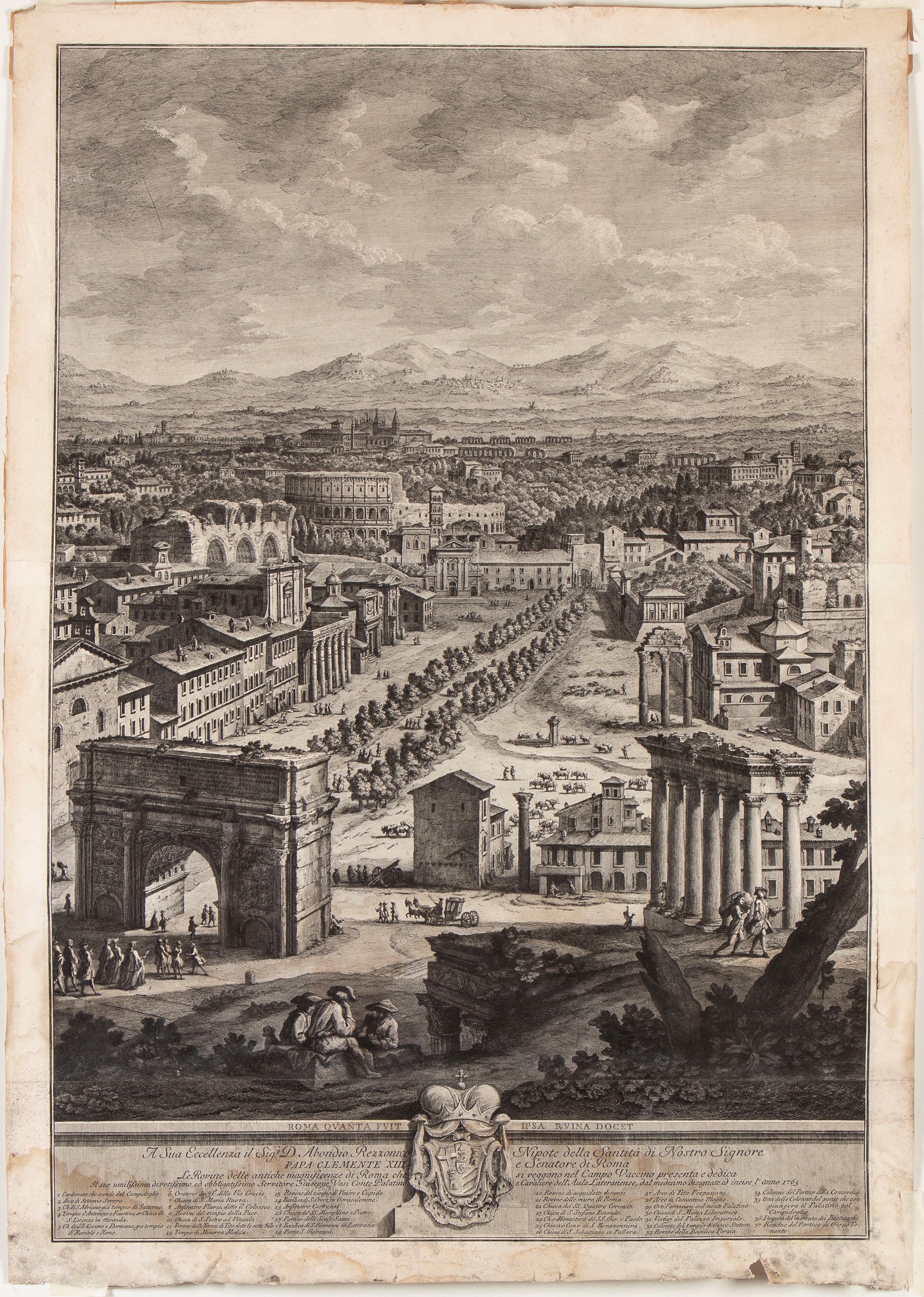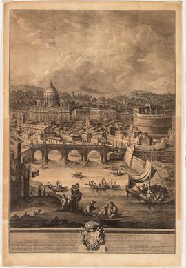 Il Prospetto della Città Leonina, che si vede colla Basilica Vaticana, Ponte, e Castel S. Angelo | La veduta della Basilica di S. Paolo fuori delle Mura | Le rovine delle antiche magnificenze di Roma | La veduta della Basilica di S. Maria Maggiore