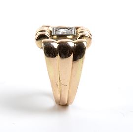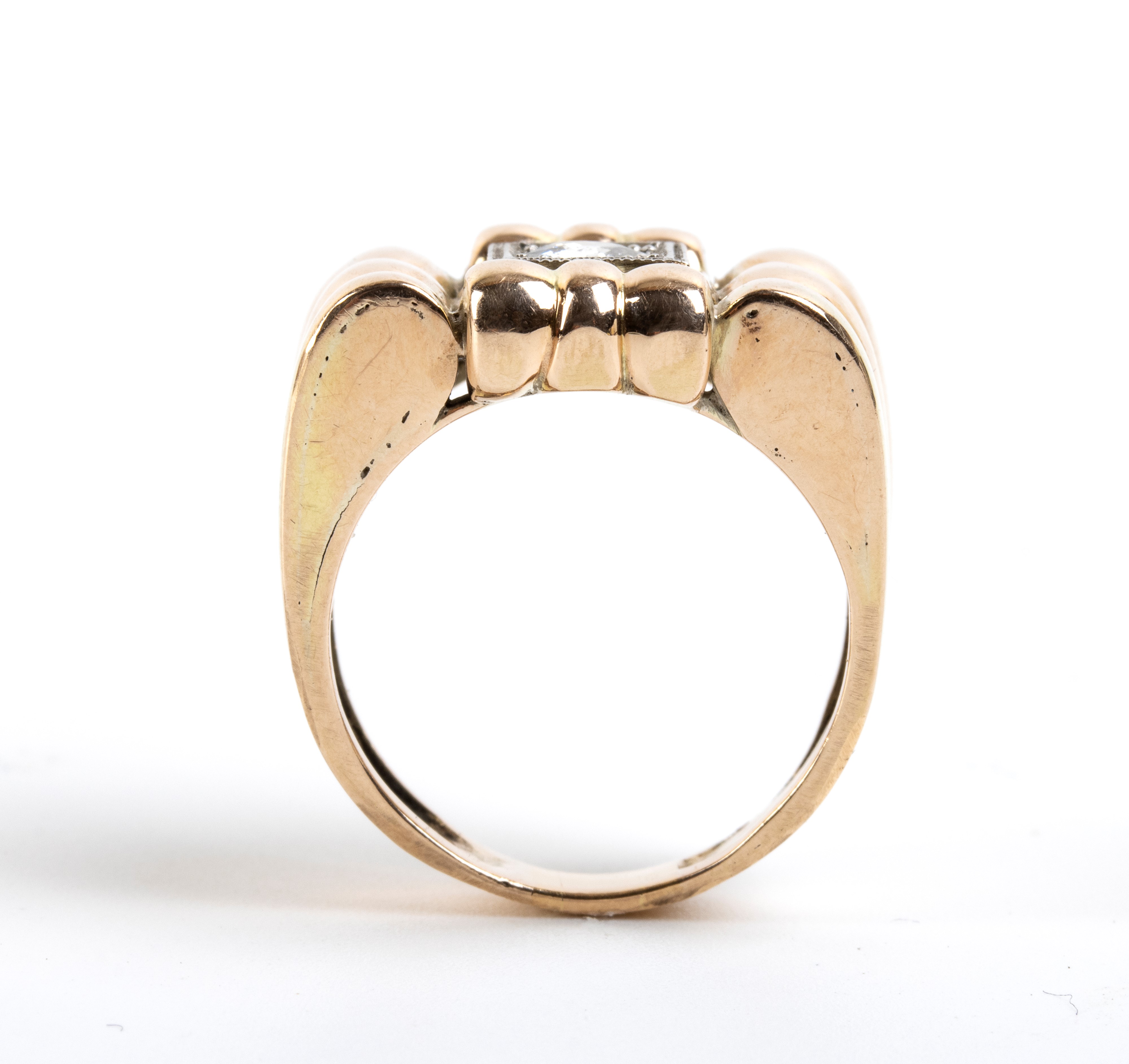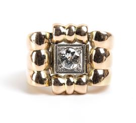 in oro bianco ed oro rosa, incastonato con n. 01 diamante di taglio vecchio europeo, stimato per un peso di circa 0.60 ct.