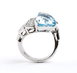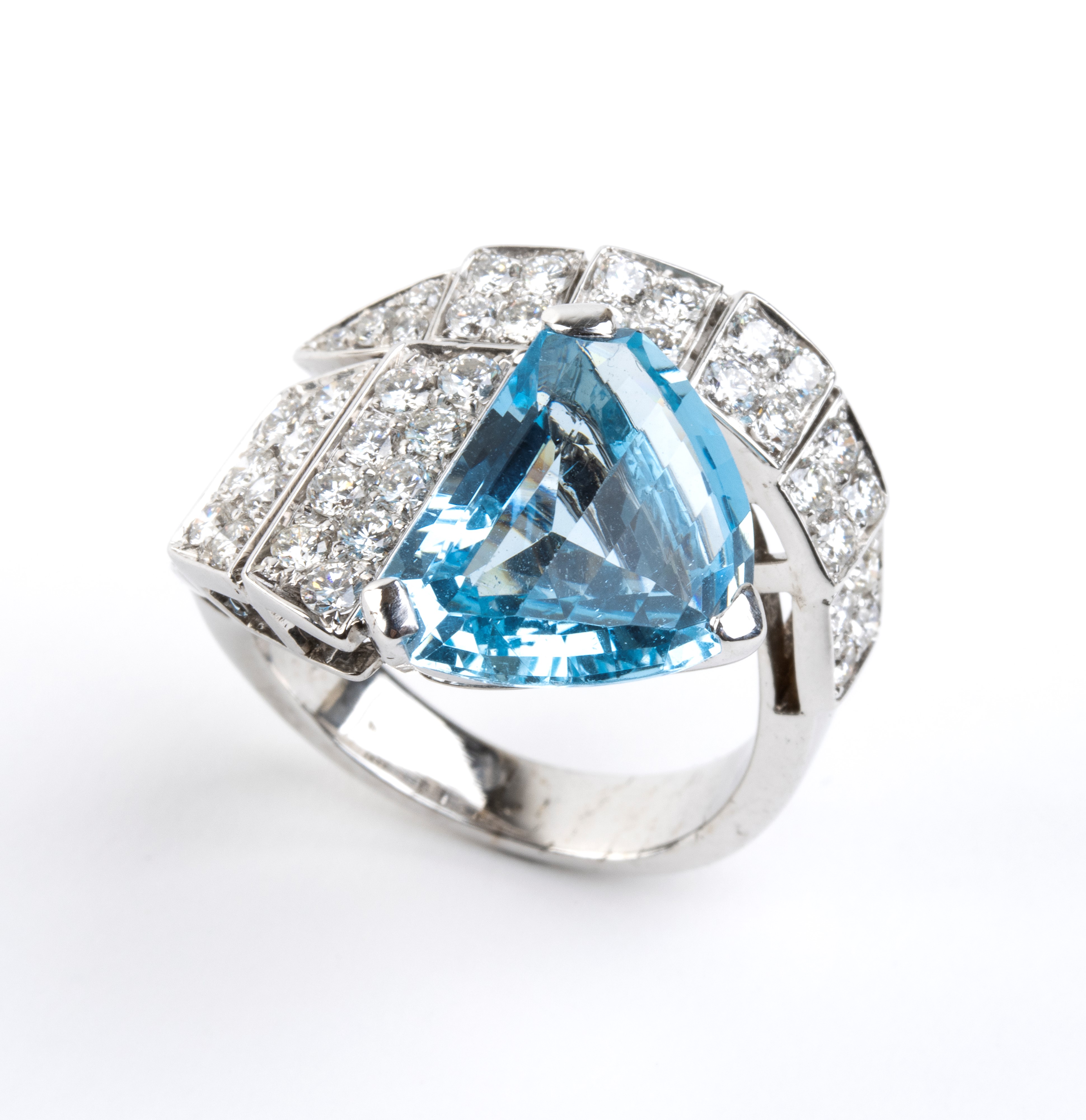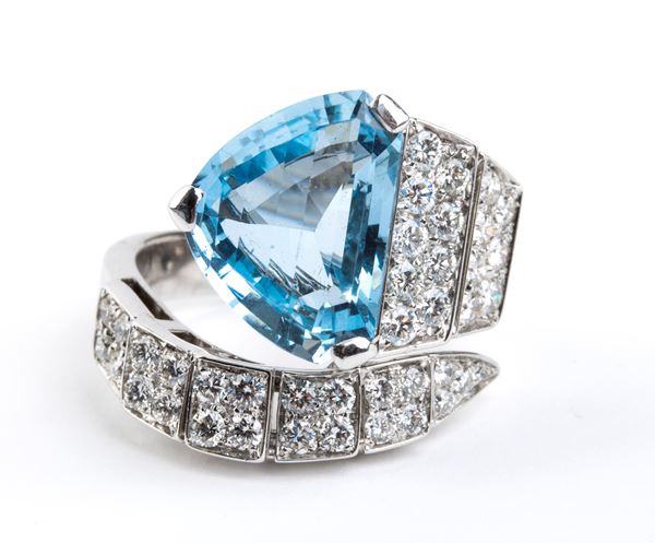 Anello a serpente in oro con acquamarina e diamanti