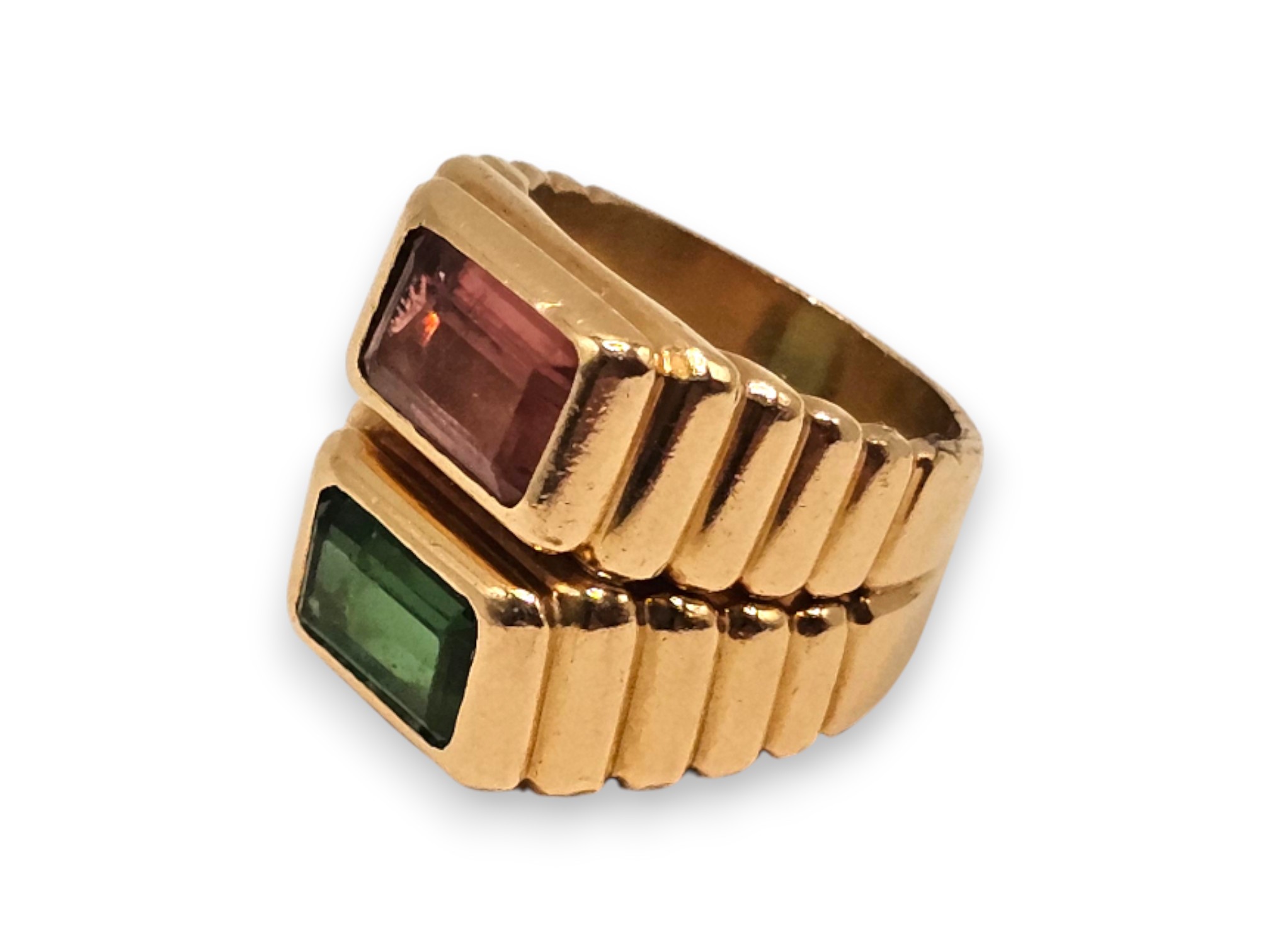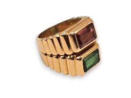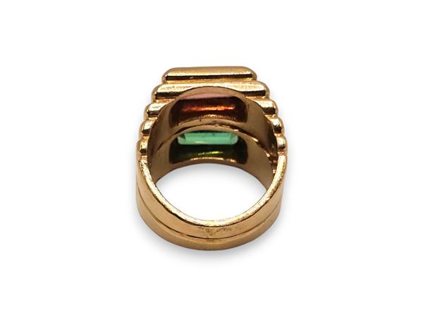 modellato come una fascia in oro giallo, incastonato con coppia di tormaline.