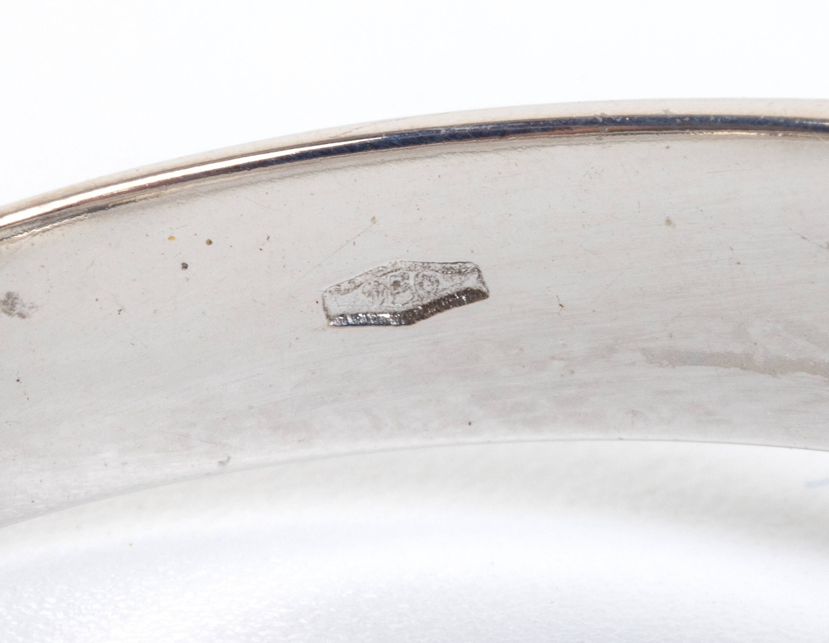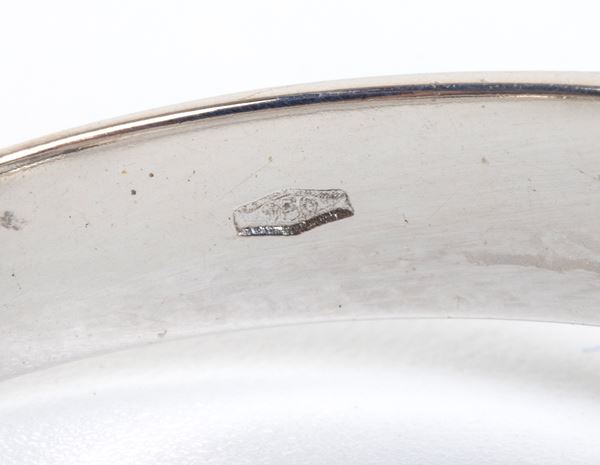 in oro bianco 18k, incastonato con diamante taglio brillante stimato per un peso di circa 0.75 ct, colore H-I, purezza VS.