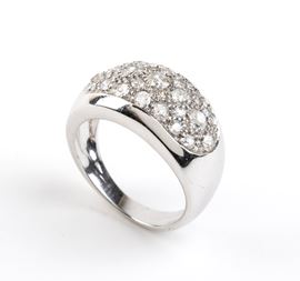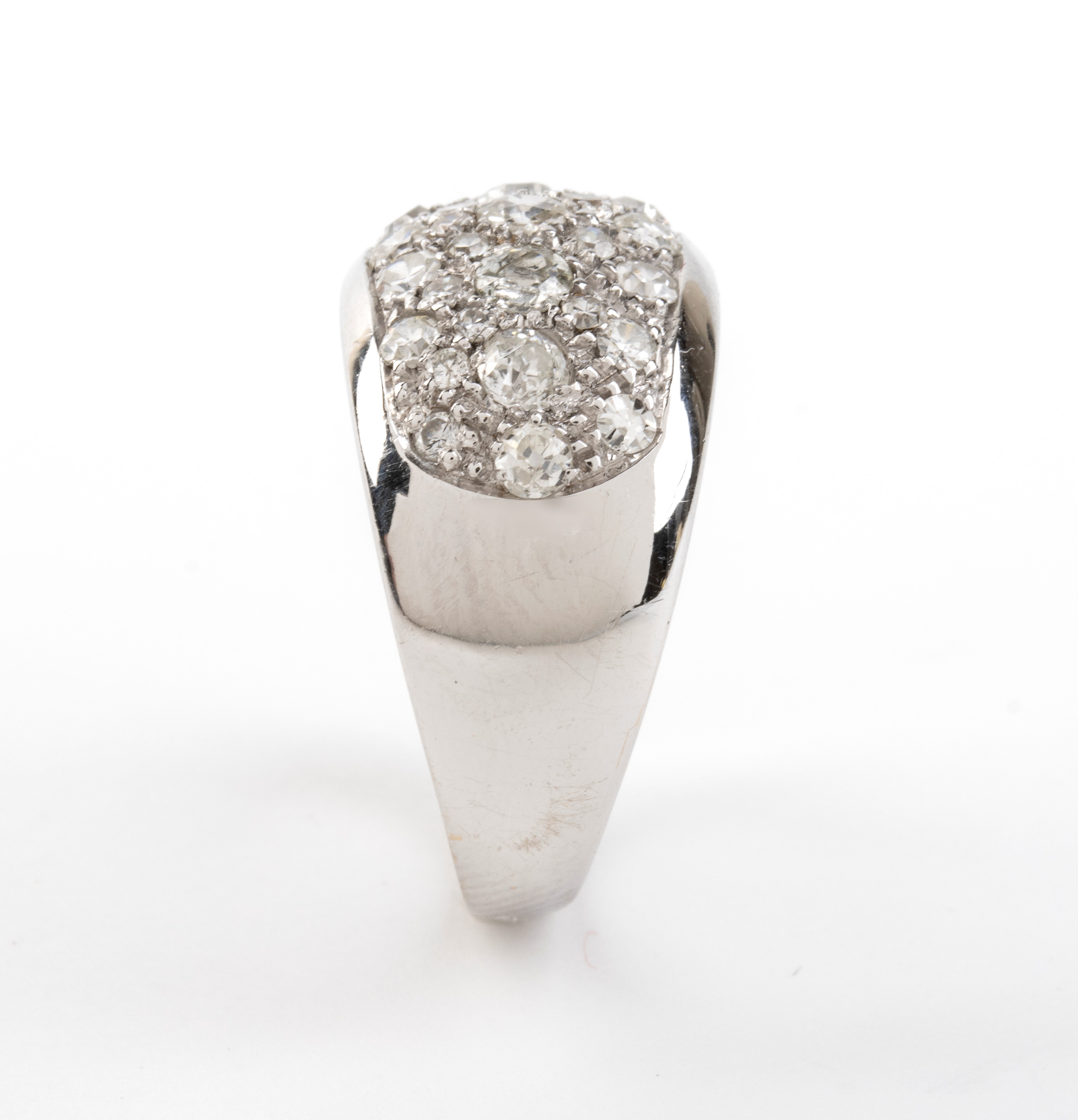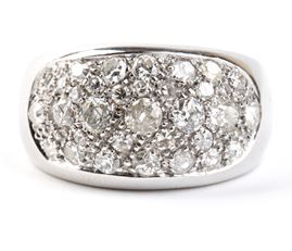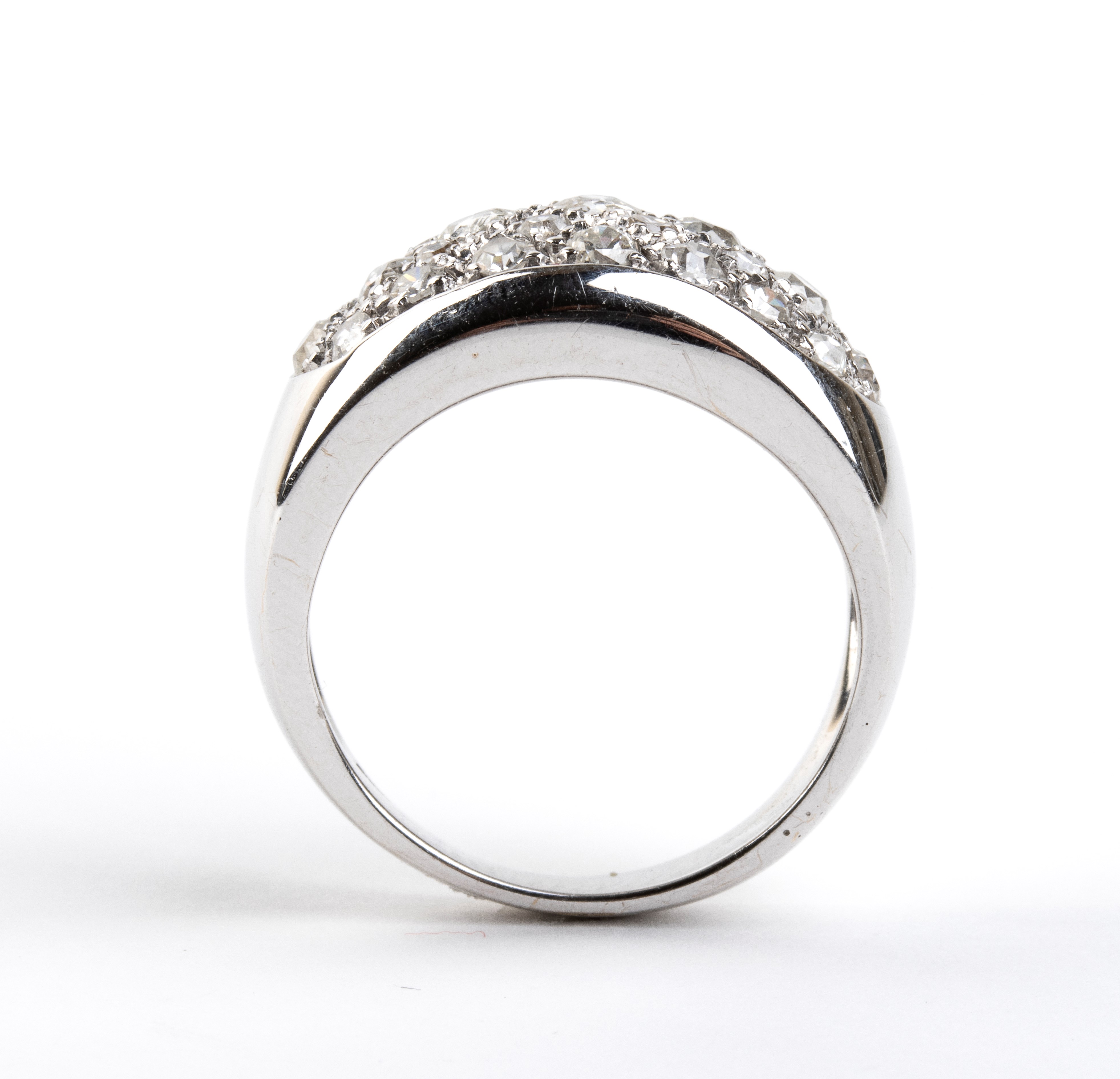 modellato come una fascia in oro bianco, incastonato con pavé di diamanti di forma rotonda, taglio old mine e taglio vecchio Europeo, per un peso totale stimato di circa 2.00 ct.