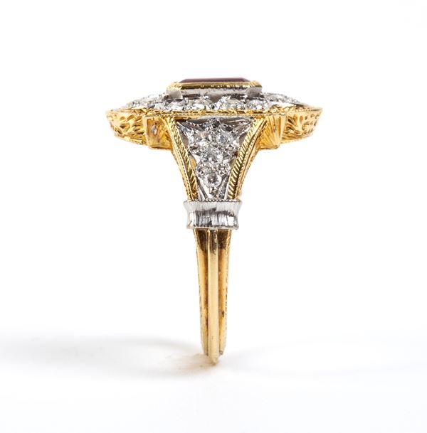 Anello in oro con tormalina e diamanti