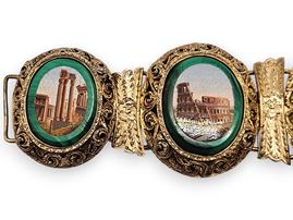 Bracciale con micromosaici in paste vitree ed argento dorato, fine XIX secolo