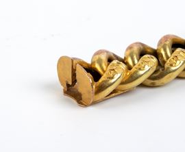 in oro giallo, con catena a maglia grumetta incisa.