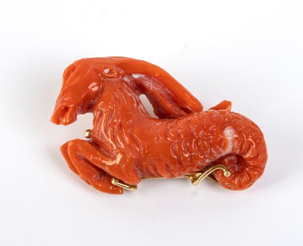 con quattro maglie rettangolari a lastra ricurva lavorate a sbalzo e decorate con motivi di lotta tra guerrieri classici ed animali selvatici.