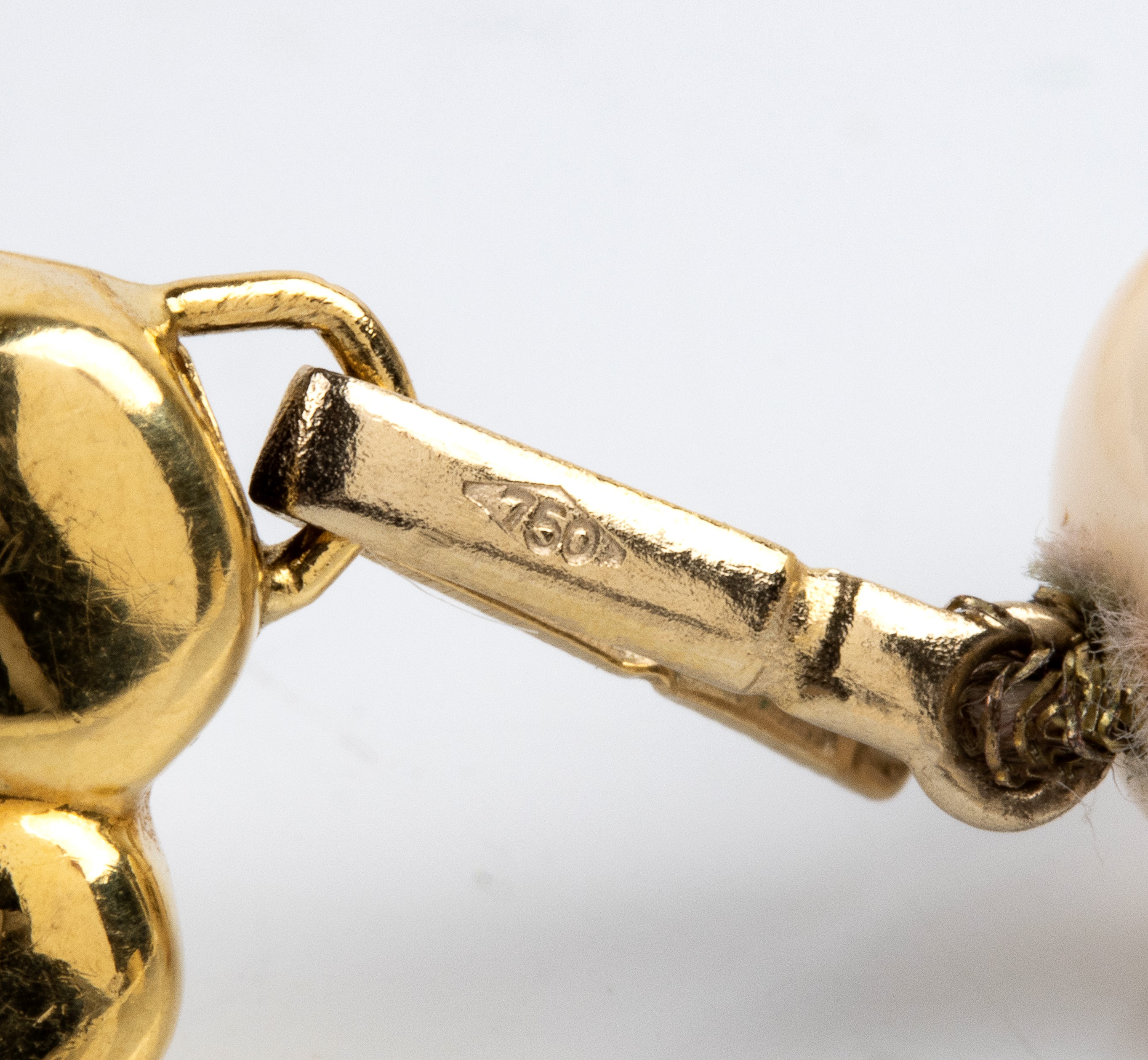 Collana di perle coltivate, fermezza in oro ed argento con diamanti