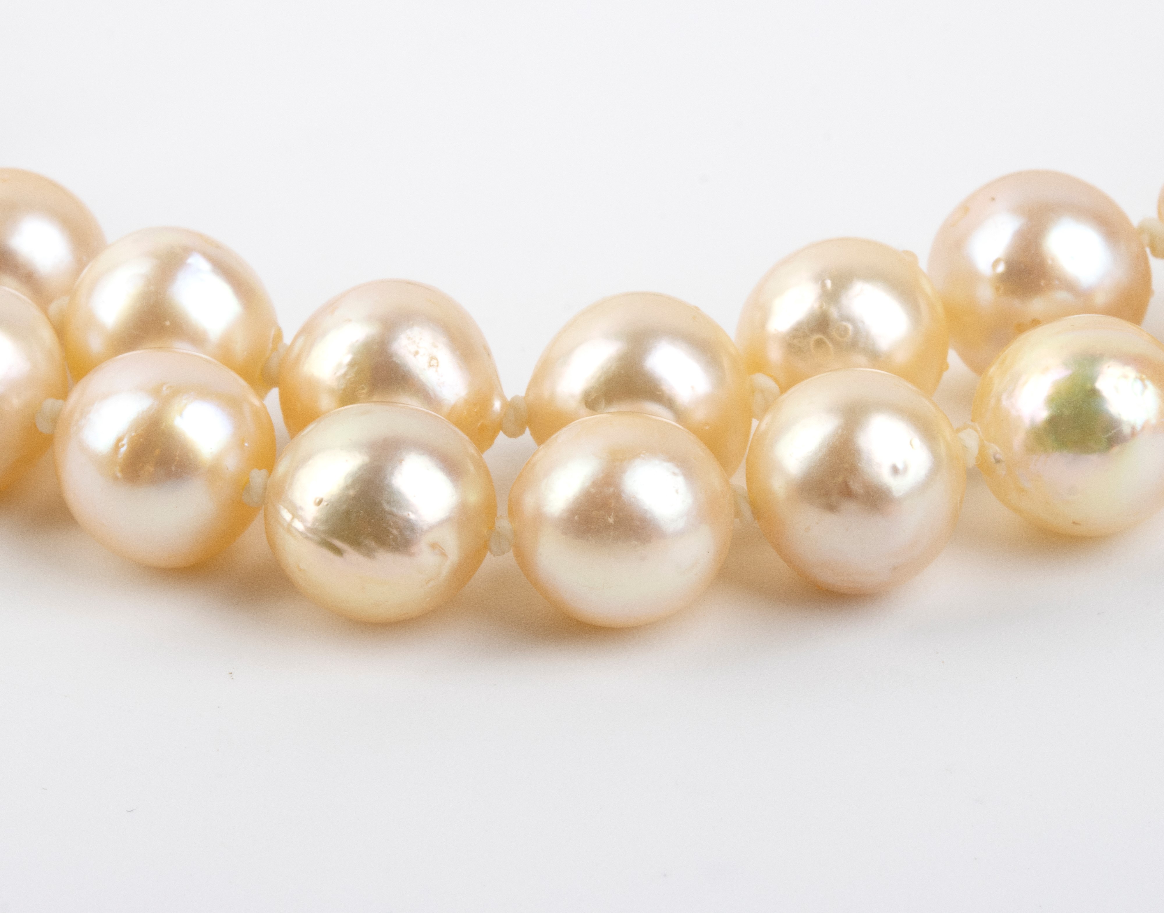 Punzonato “750”. Lunghezza collana: 41 cm. Diametro perle: 9 - 9.5 mm. Peso: 100.3 gr.