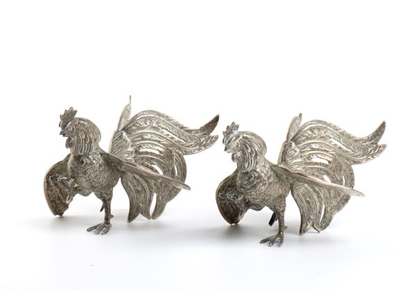 Coppia di galli in argento, Italia, XX secolo