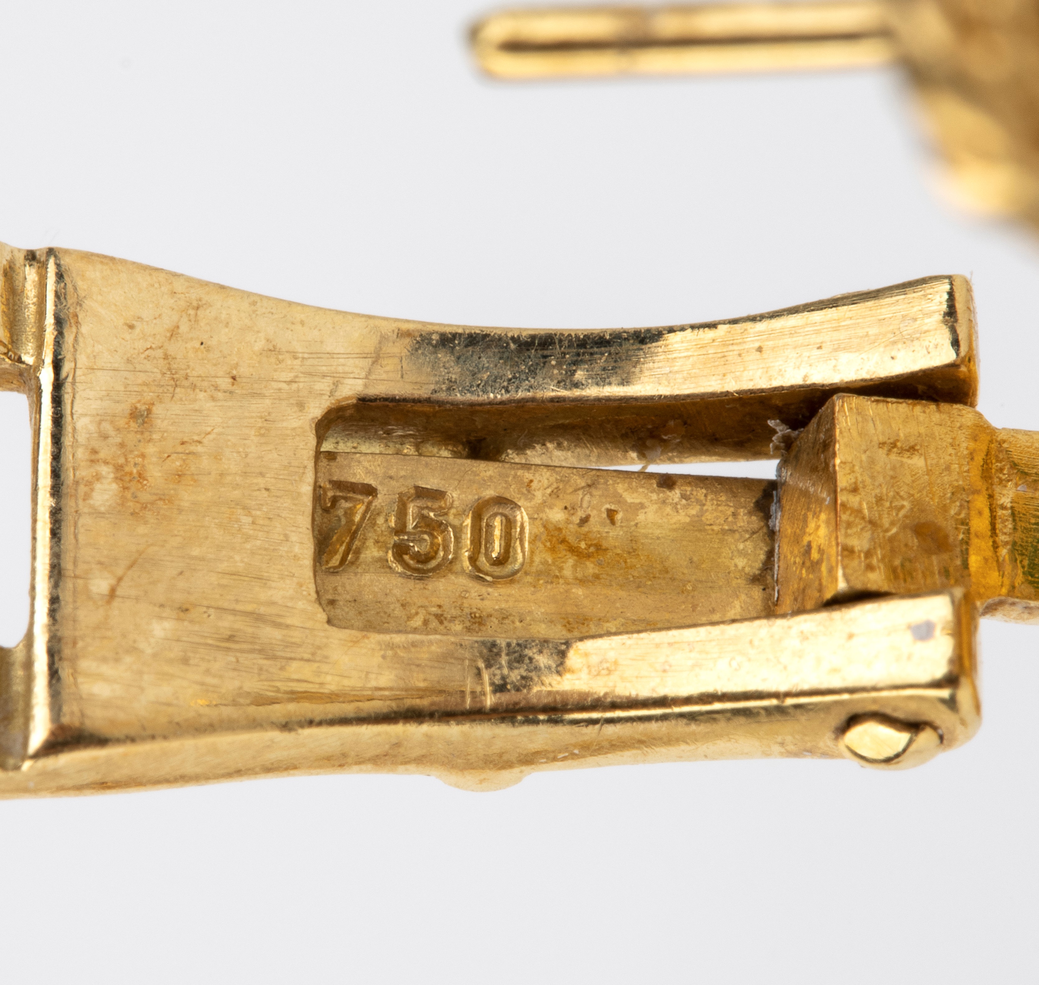 Punzonato “750”. Dimensione fronte orecchini: 2.20 x 0.9 cm. Peso: 39 gr.