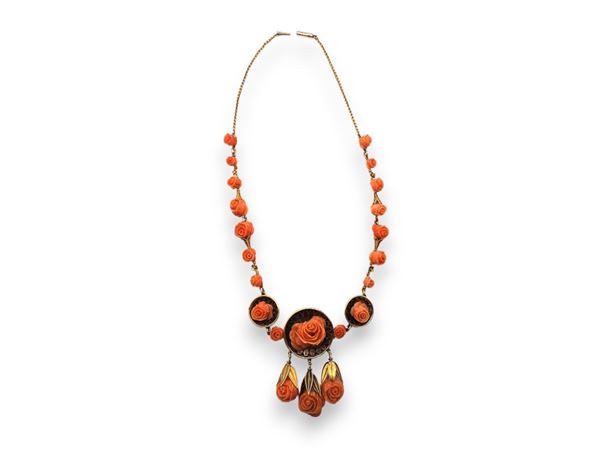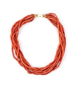 Girocollo a torsade in corallo con fermezza in oro e smalto