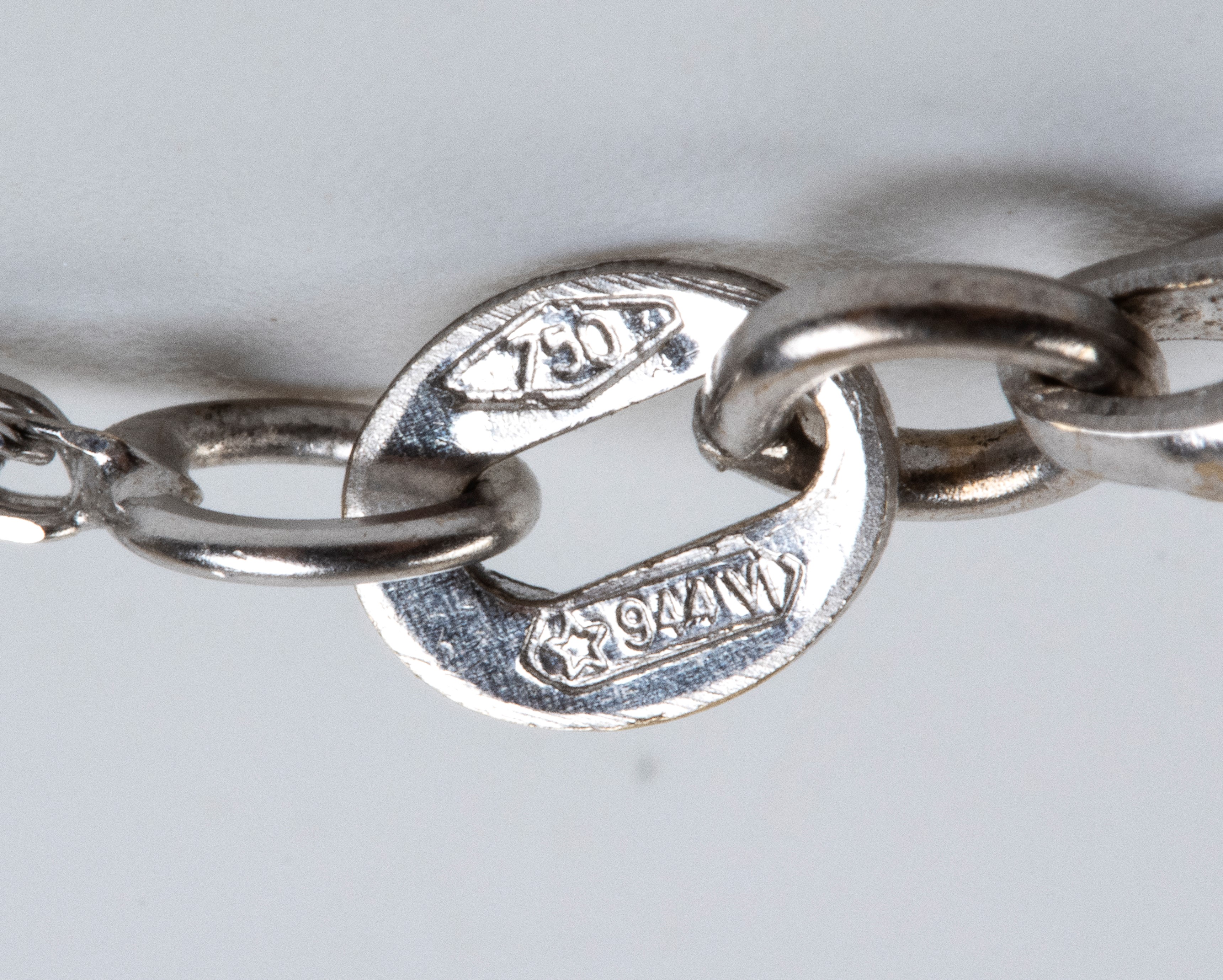 Lunghezza: 44 cm. Dimensioni pendente: 4 x 2 cm. Peso: 9.3 g.