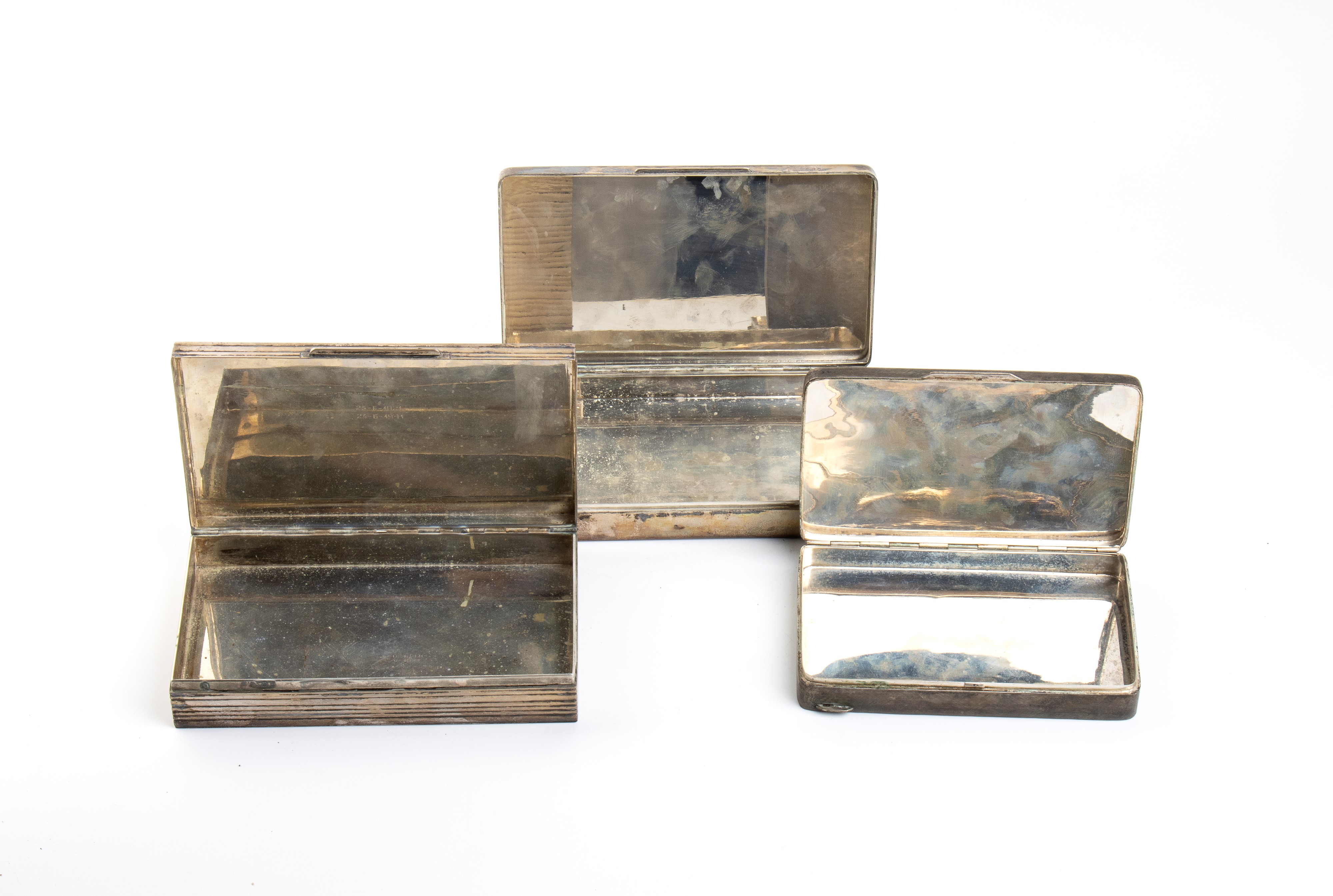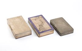 1 - Astuccio rettangolare caratterizzato da una lavorazione superficiale a costolature orizzontali. Punzonato "800" e "20 FI", internamente presenta le date "23-6-1921" e "23-6-1941";