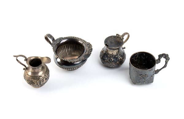 Lotto di 4 bricchi in argento, Italia, XX secolo