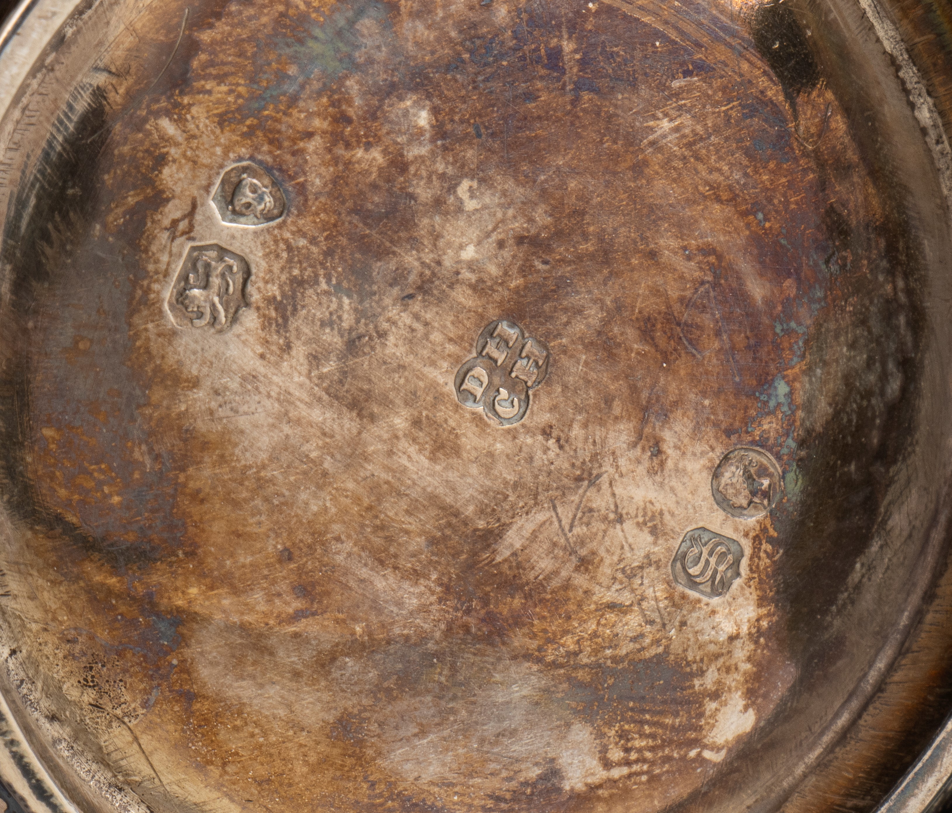 3 - Bricco panciuto con manico e coperchio incernierato, decorato con motivi a rilievo, Londra, 1873-1874, argentiere Daniel & Charles Houle;