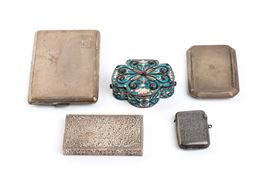 4 - Astuccio in argento con una fitta decorazione incisa a volute e arabeschi floreali che ricopre l'intera superficie, punzonata "925";