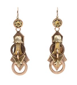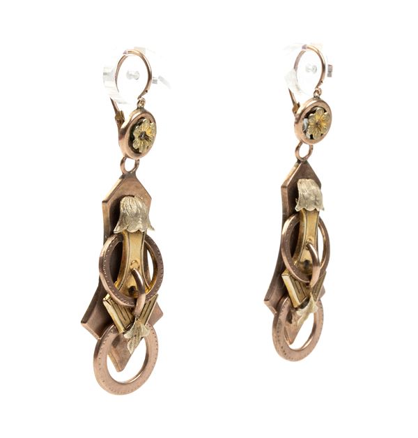 Orecchini borbonici pendenti in oro giallo, fine XIX secolo