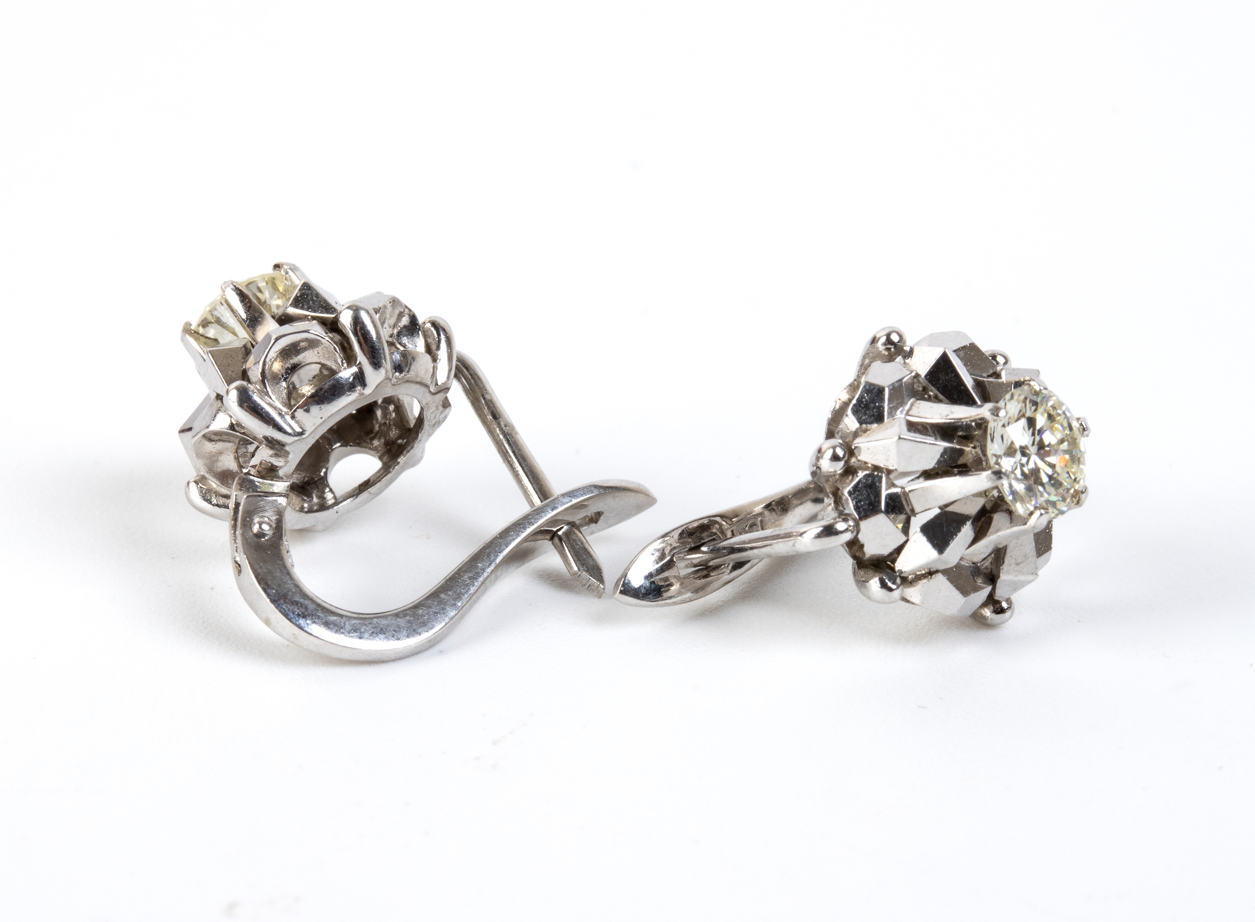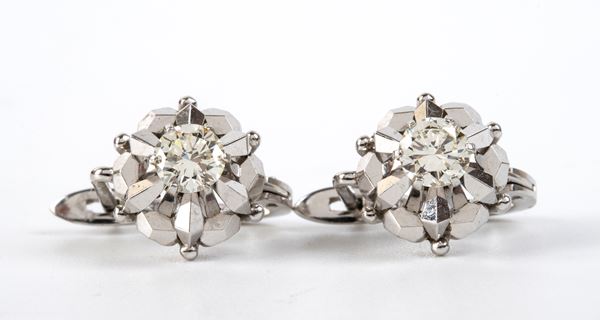 in oro bianco 18k, incastonato con 2 diamanti stimati per un peso totale di circa 0.60 ct, colore J-K, purezza VVS.