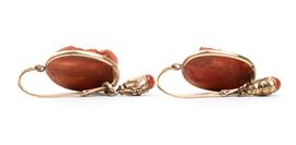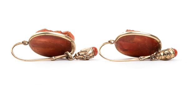 Paio di orecchini pendenti in corallo Mediterraneo ed oro, fine XIX secolo