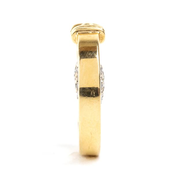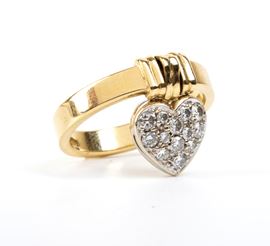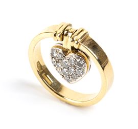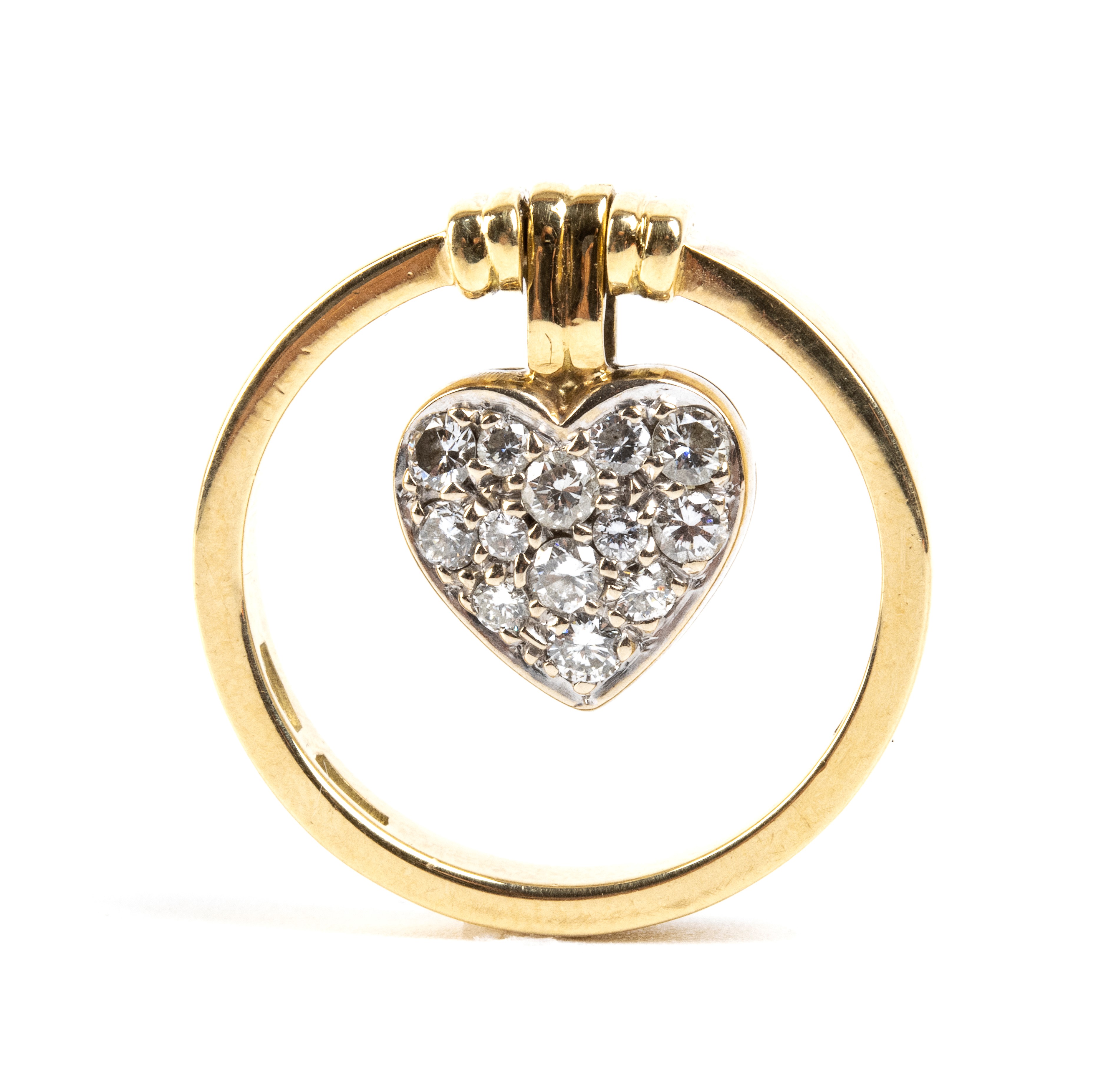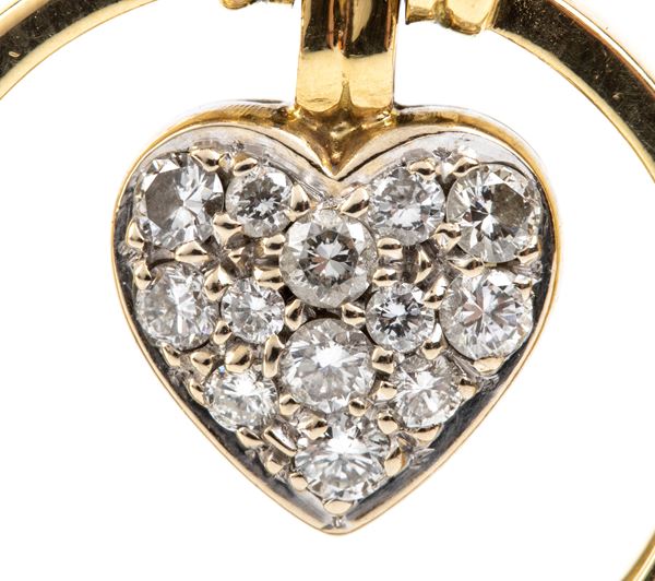 in oro bianco ed oro giallo 18k, con pendente a forma di cuore, impreziosito da diamanti taglio brillante stimati per un peso totale di circa 0.35 ct, colore G-H, purezza VS. Firmato "F. PASQUALI".
