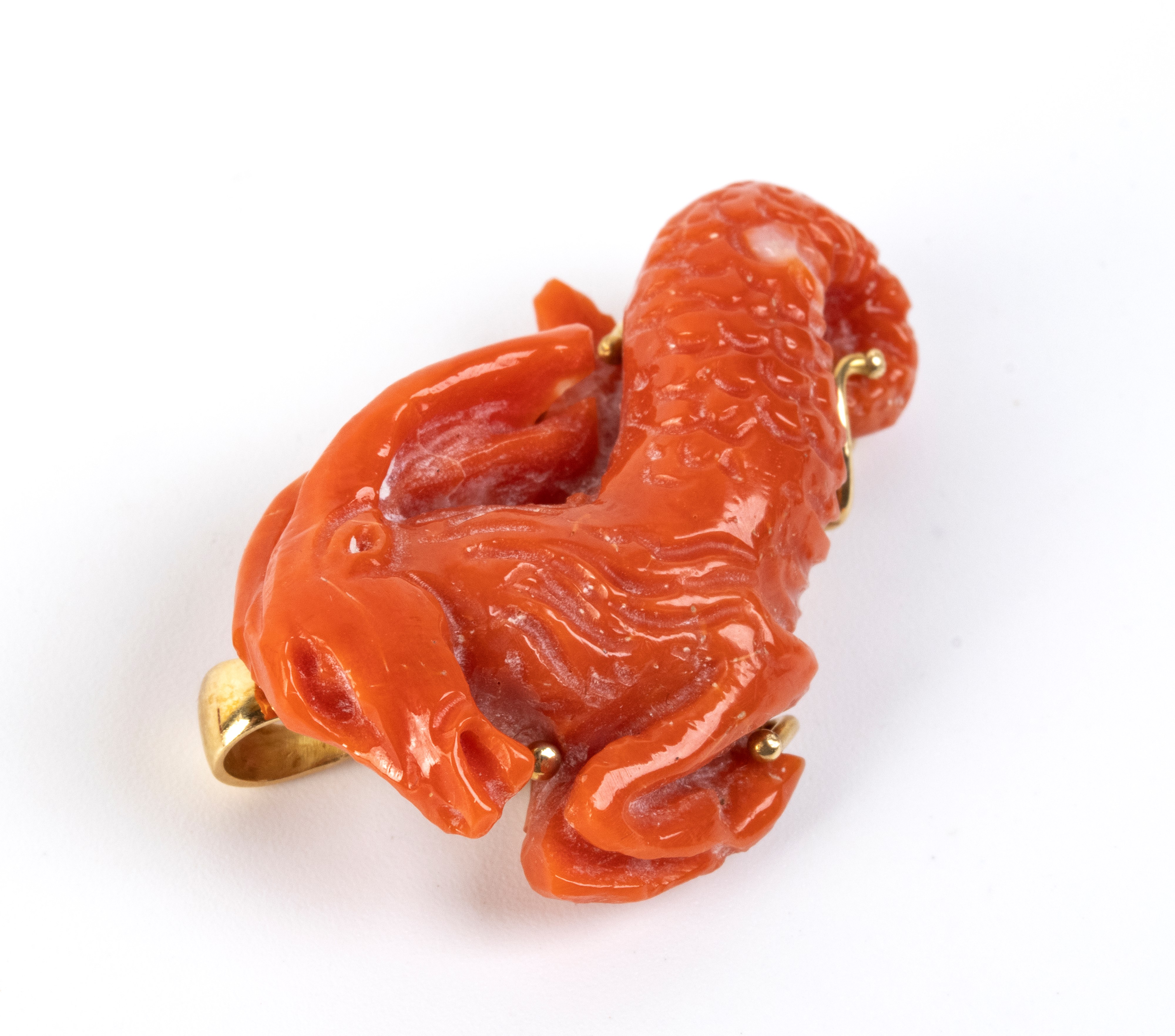 Figura mitologica scolpita in corallo Cerasuolo (Corallium Elatius).
