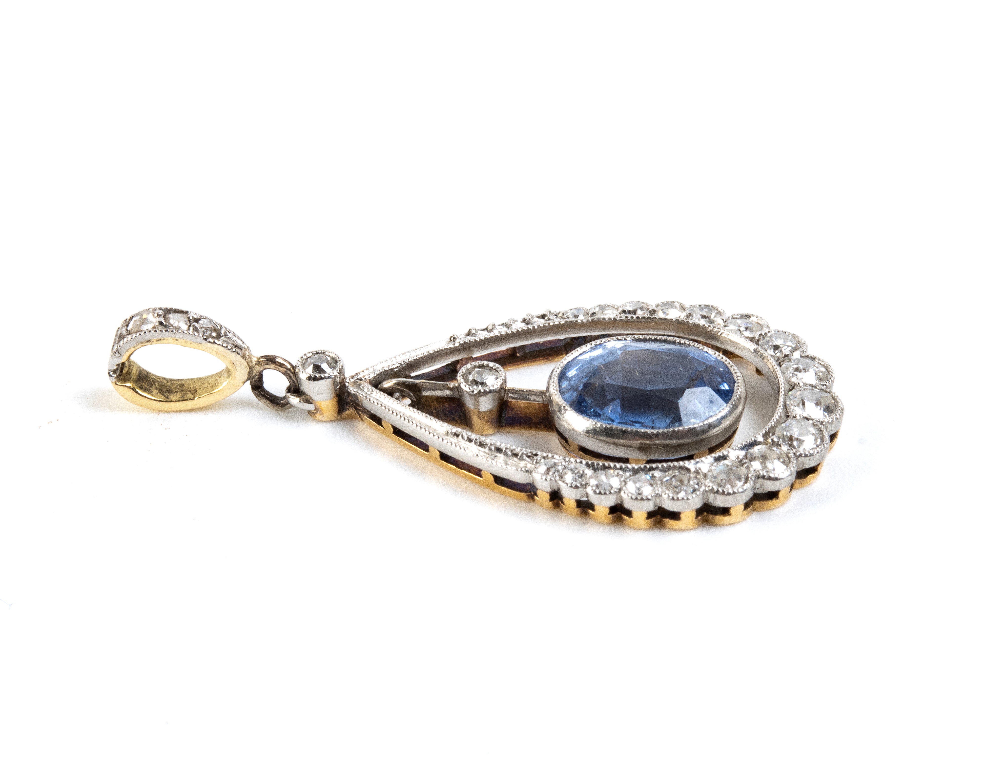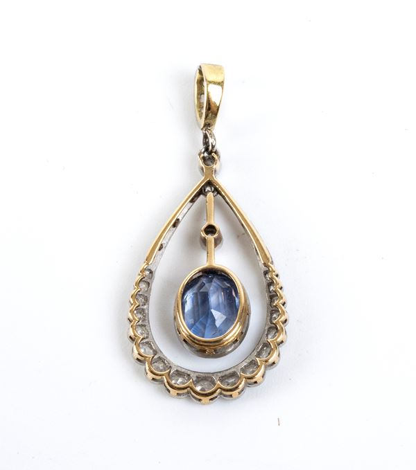 Pendente in oro, platino con zaffiro e diamanti, fine XIX secolo