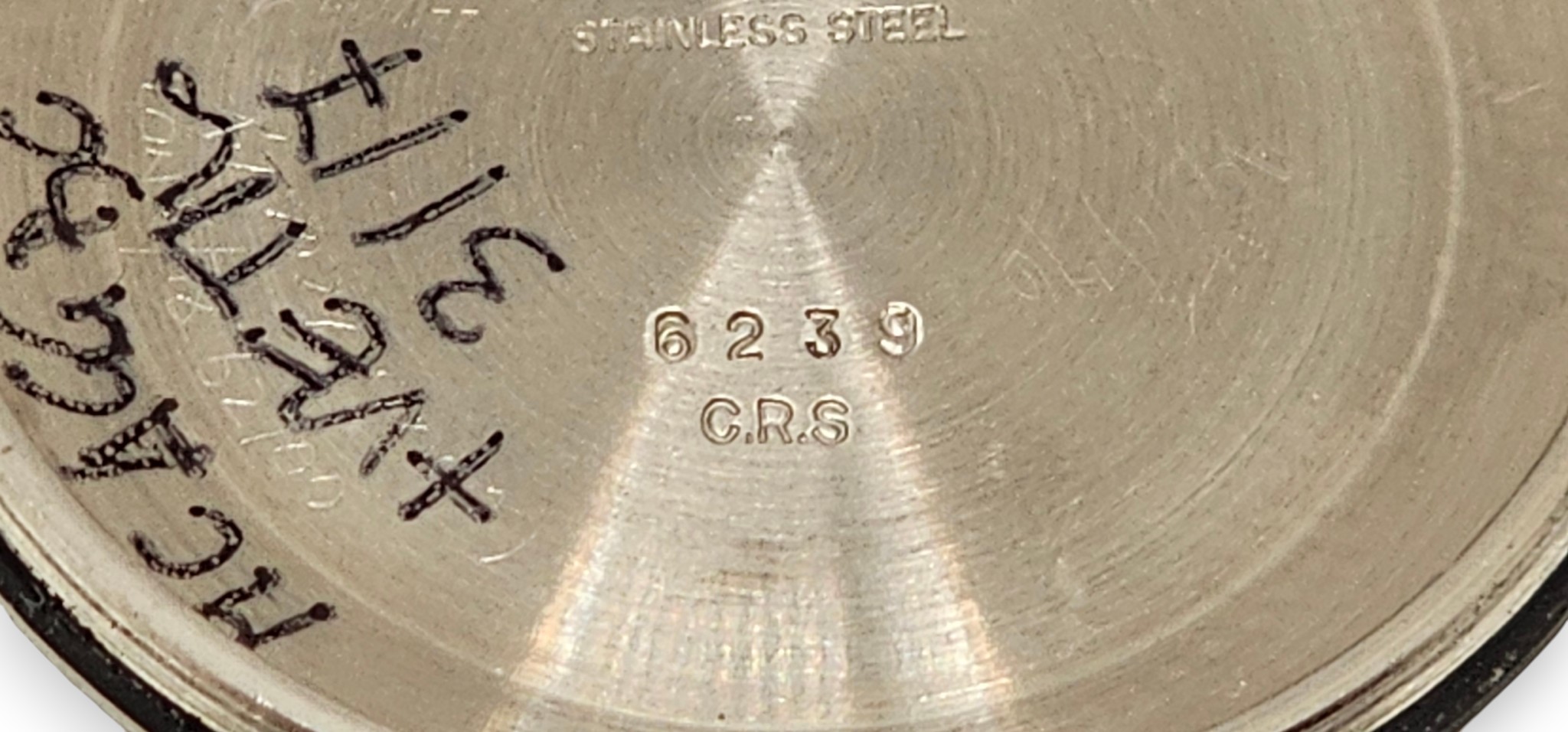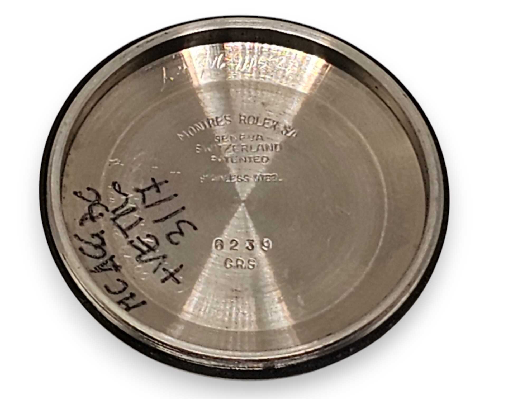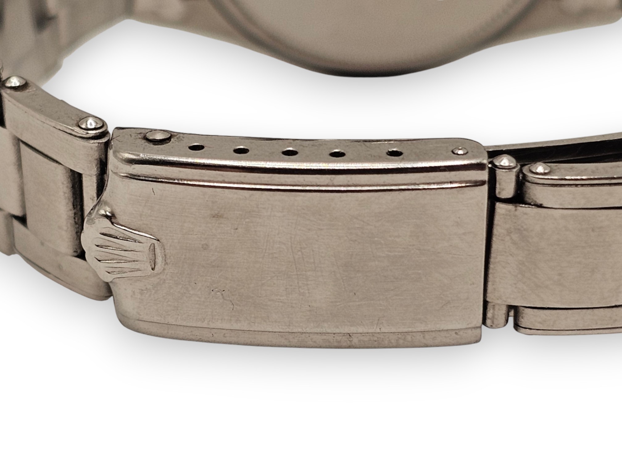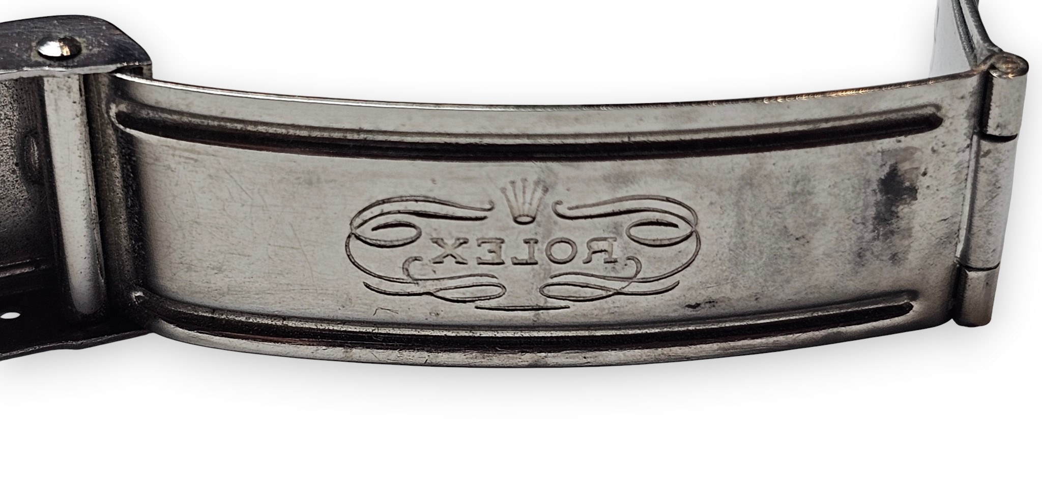 con cassa in acciaio, pulsanti a pompa e corona a vite, quadrante con scritta nera "ROLEX COSMOGRAPH DAYTONA" su fondo argento e contatori neri, bracciale in acciaio a rivetti, referenza 6635, finali 57, fibbia deployante 1/69. Movimento manuale calibro 722-1, fondello a vite. Referenza 6239, matricola 1.695.174.