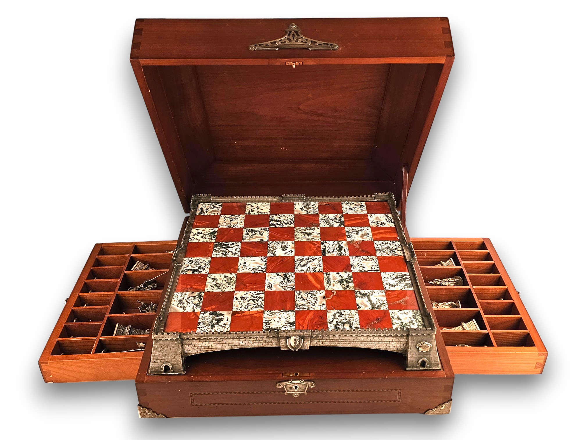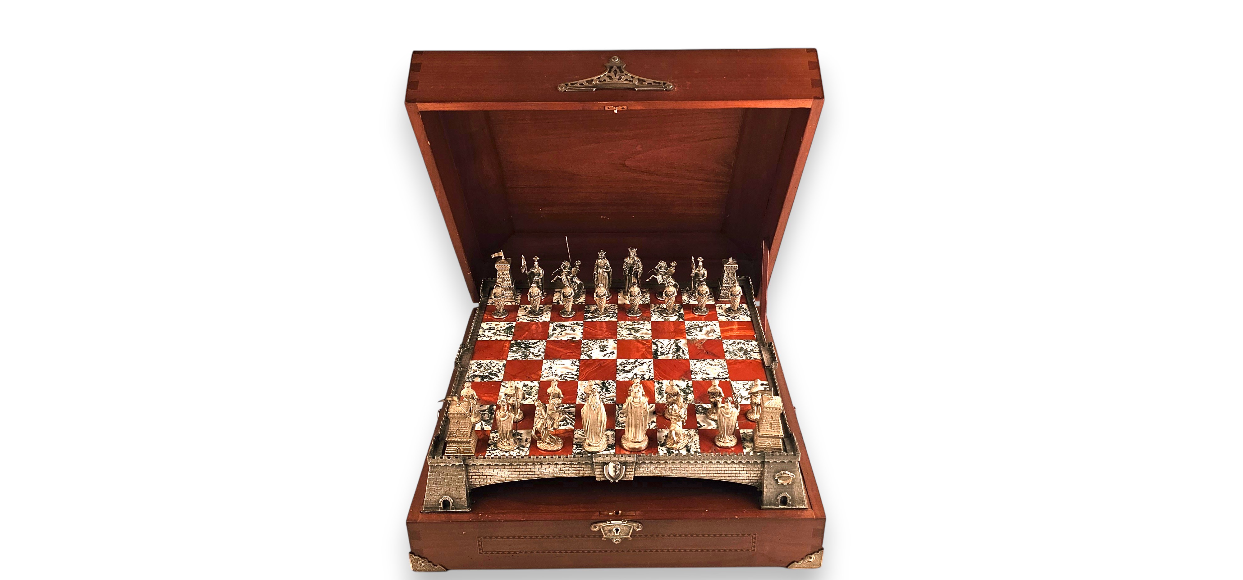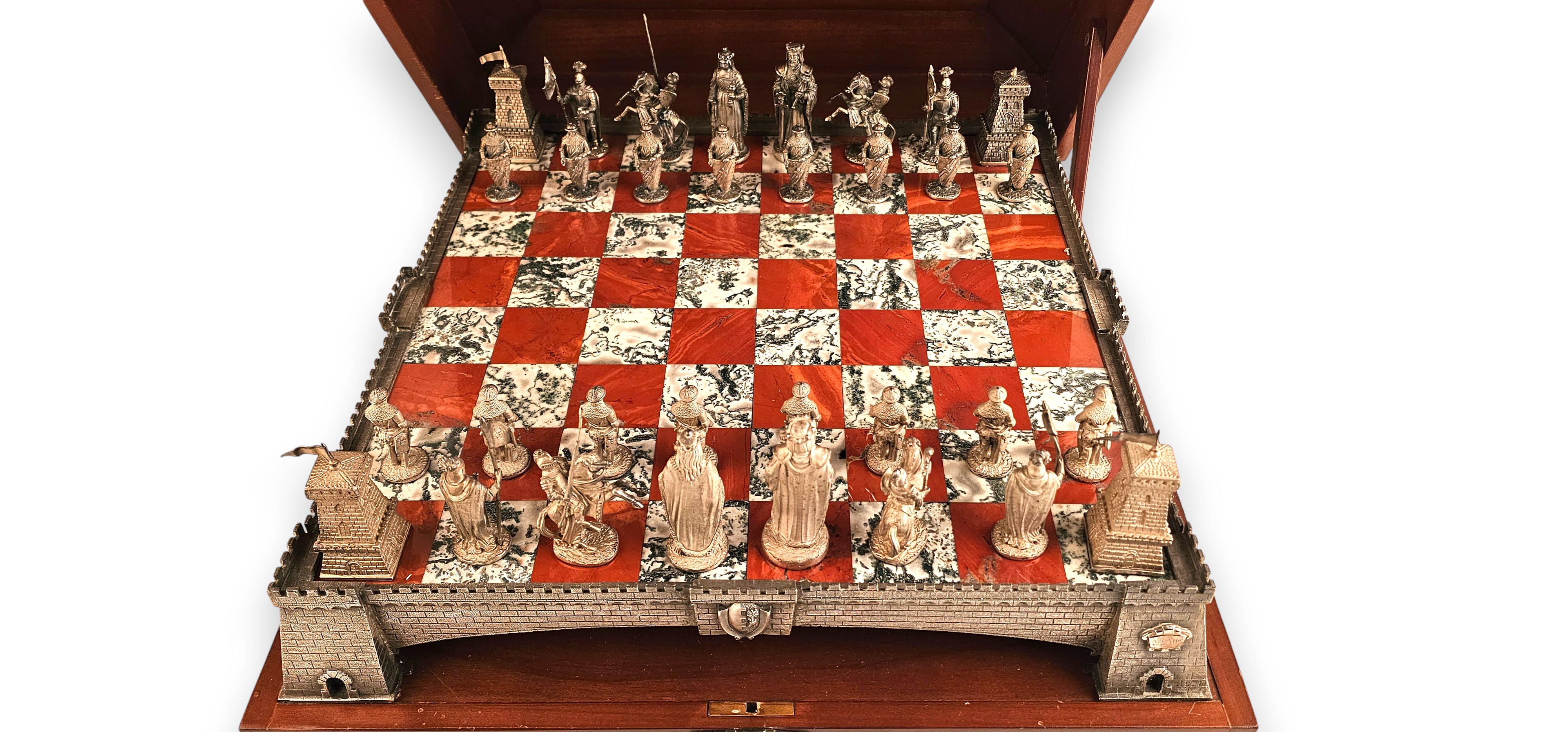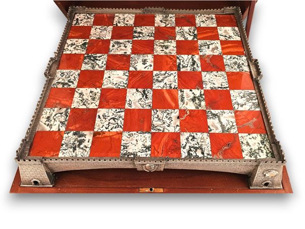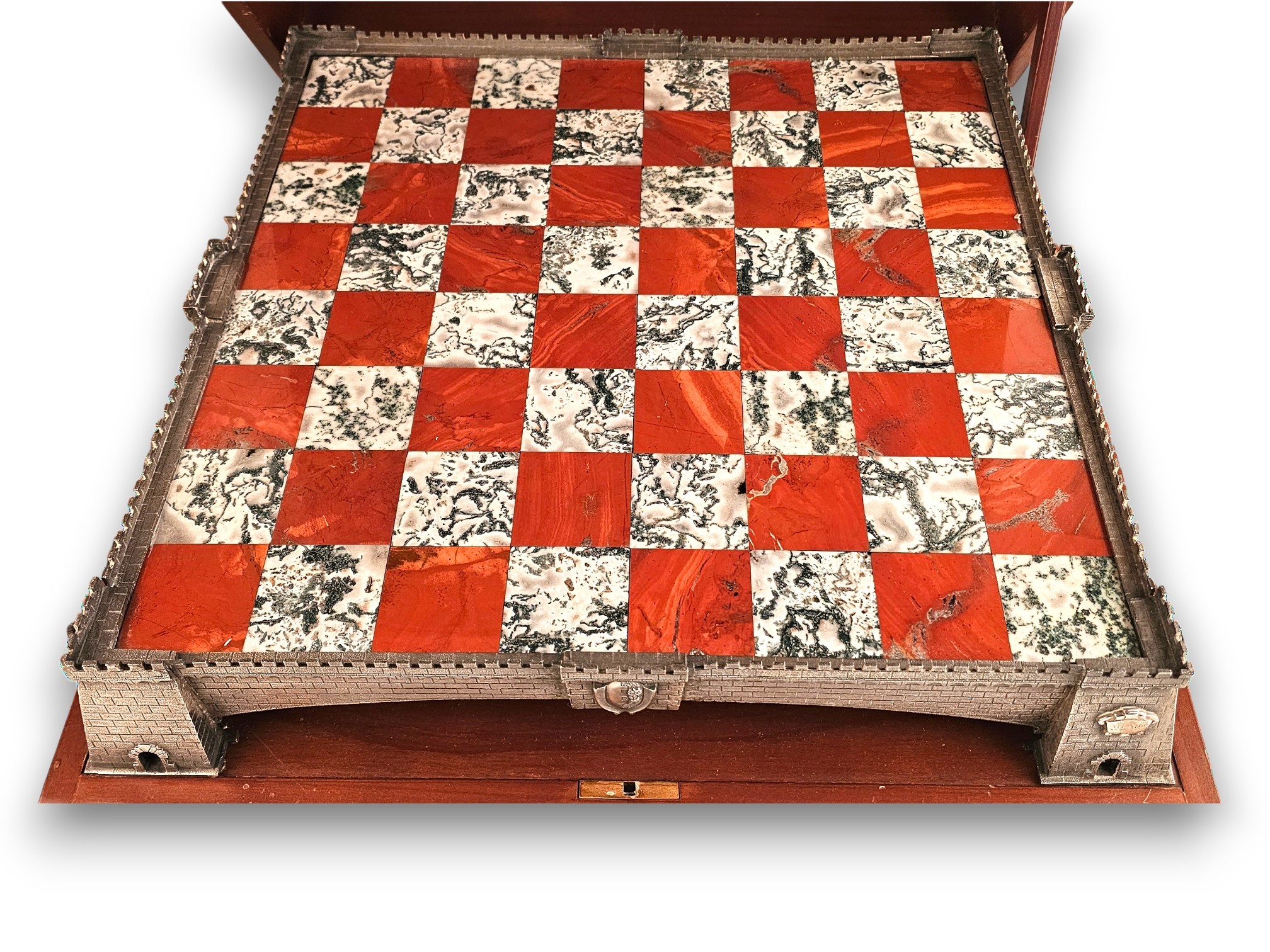 Scacchiera "Marostica" in argento, diaspro e agata muschiata, Anni '90 del XX secolo