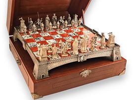 La scacchiera è ispirata alla partita a scacchi di Marostica, una rievocazione storica biennale che si svolge nella Piazza degli Scacchi (Piazza Castello) di Marostica, in provincia di Vicenza. La Partita a Scacchi con personaggi viventi mette in scena una leggenda ambientata nel 1454: due nobili locali si contendono la mano di Lionora, figlia del castellano, non mediante duello ma attraverso una nobile partita a scacchi. L’evento moderno, codificato negli anni Cinquanta dallo scenografo Mario Mirko Vucetich, coinvolge centinaia di figuranti in costume, cortei, coreografie e una partita di scacchi rappresentata su una scacchiera monumentale in marmo. Considerata una delle più note rievocazioni italiane, si tiene il secondo weekend di settembre negli anni pari.