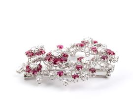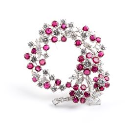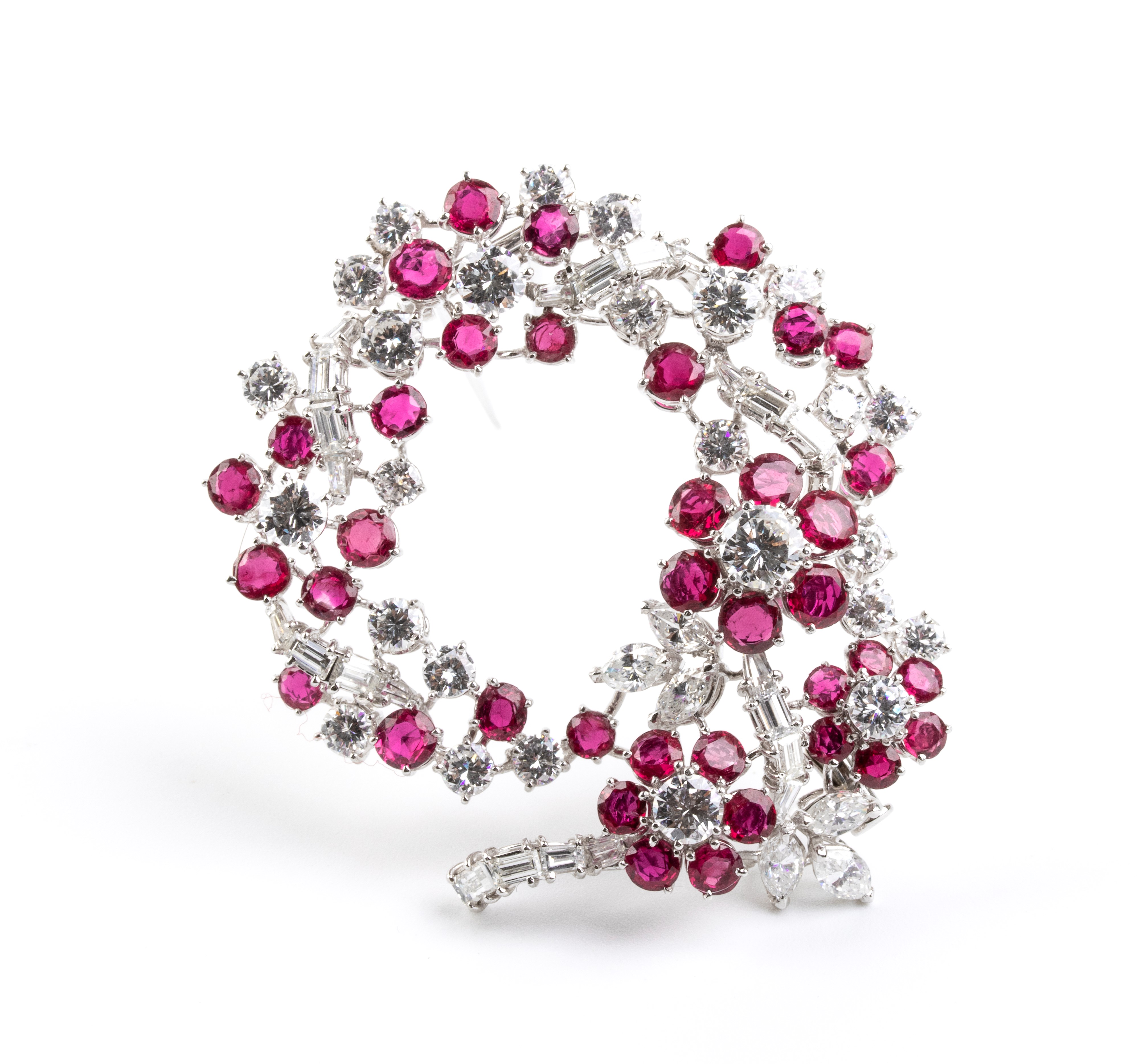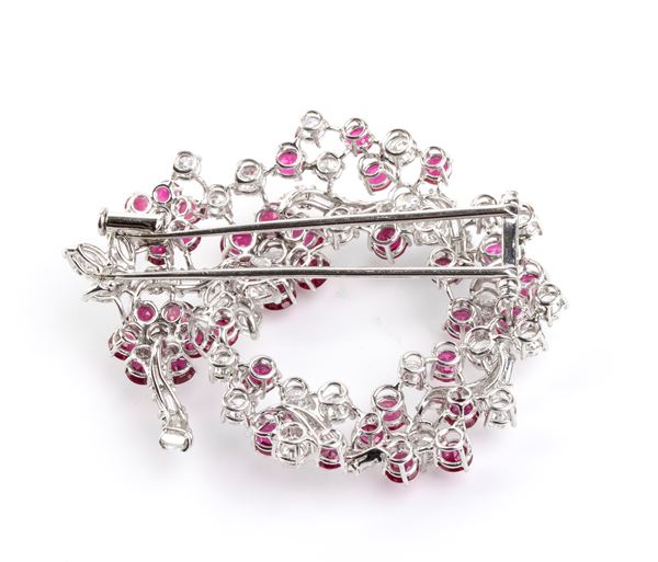 Spilla a ghirlanda in platino con rubini e diamanti, Anni '50