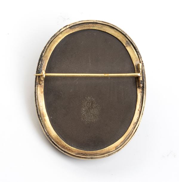 Spilla in oro con cameo in pietra lavica, Italia, XIX secolo