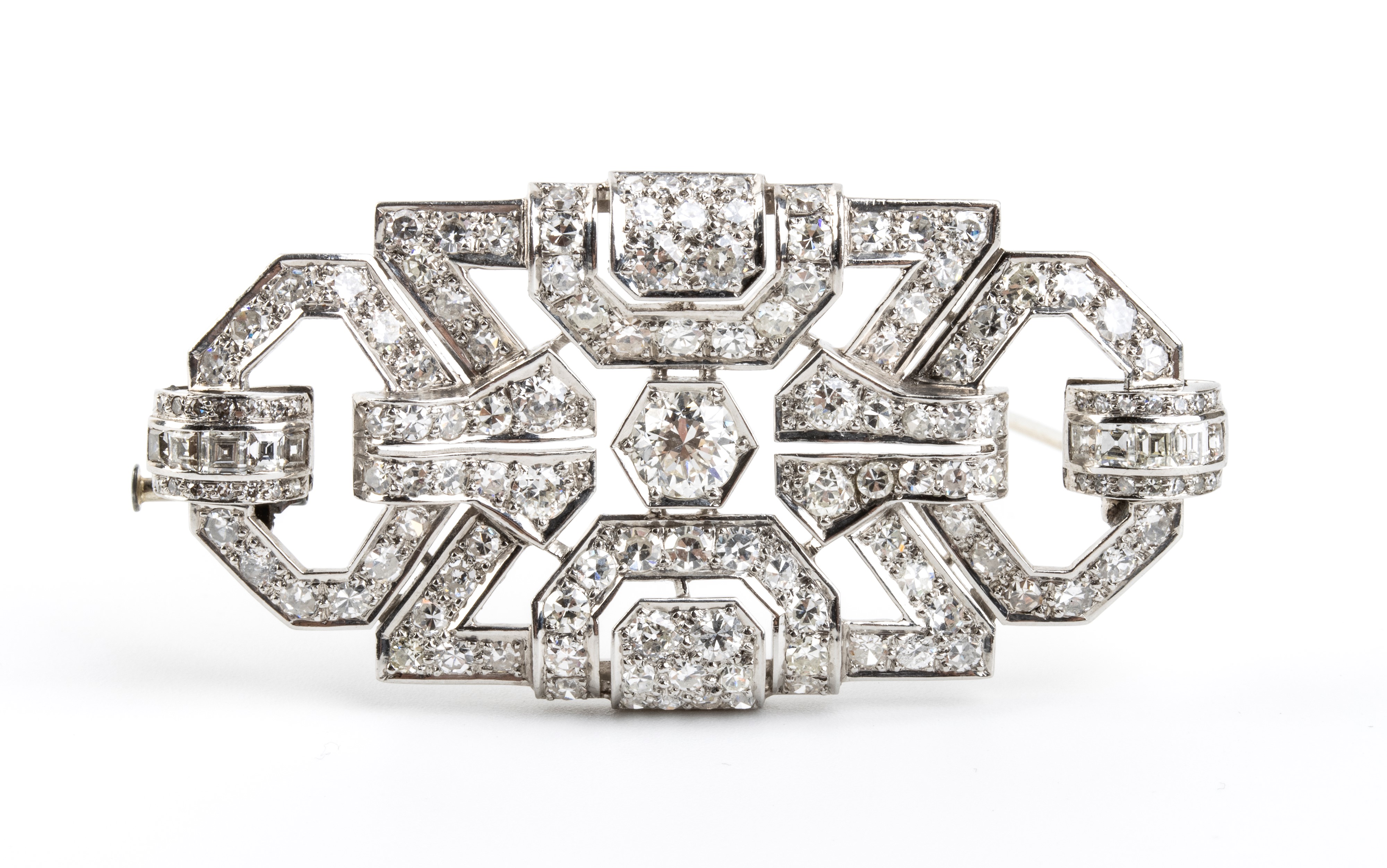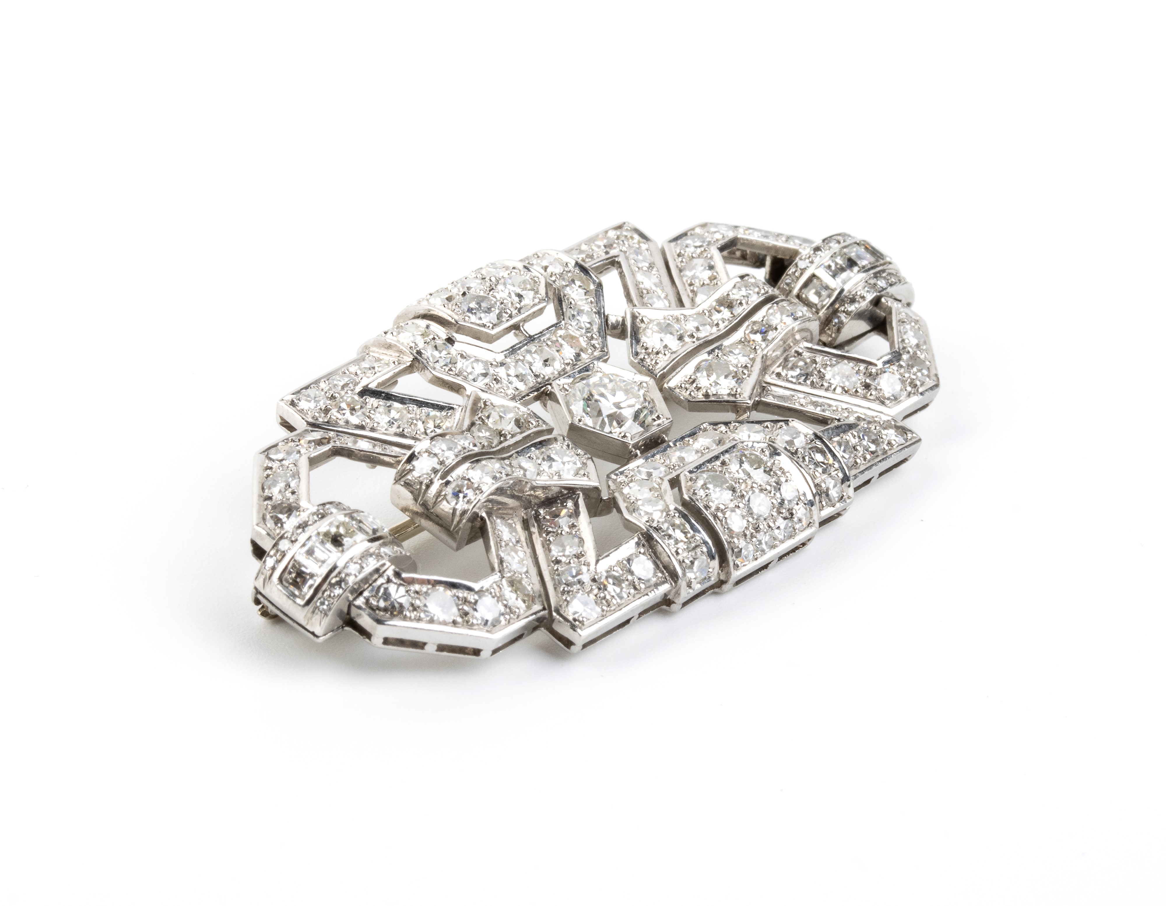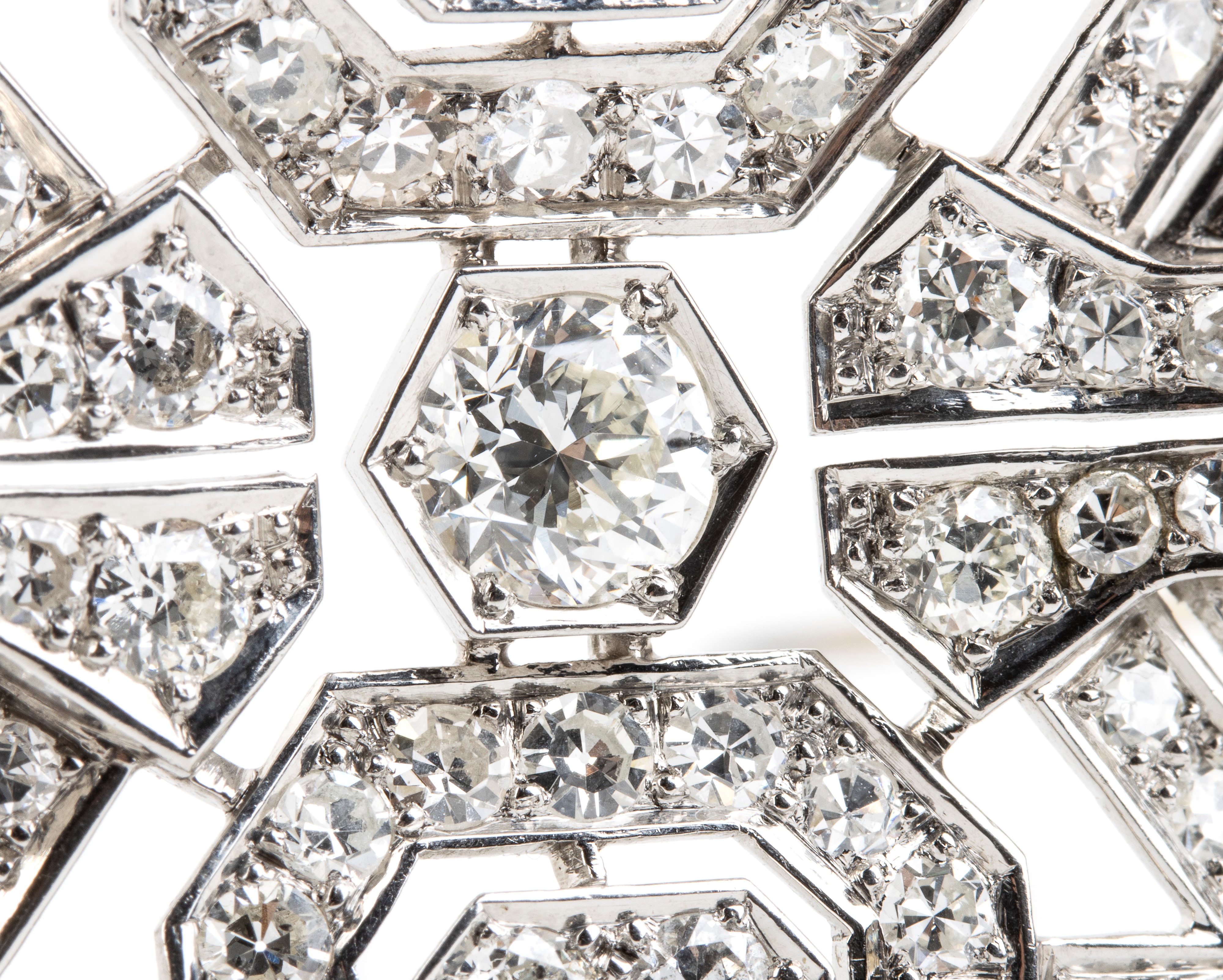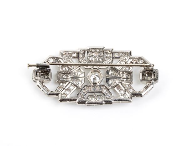 Spilla in stile Art Decò in platino con diamanti, Anni '50