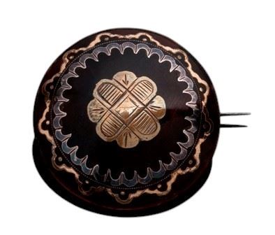 Spilla vittoria inglese in tartaruga e piqué, 1860-1870