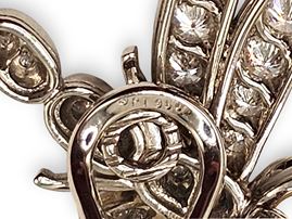 La spilla può essere indossata allacciata alle perle, la sua versatilità è garantita da un meccanismo amovibile in oro bianco che permette la trasformazione, offrendo una maggiore versatilità e possibilità di utilizzo.