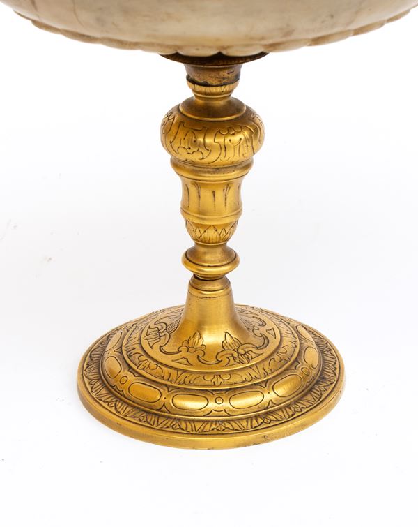 Alzata in bronzo dorato e marmo bianco, Italia, XX secolo