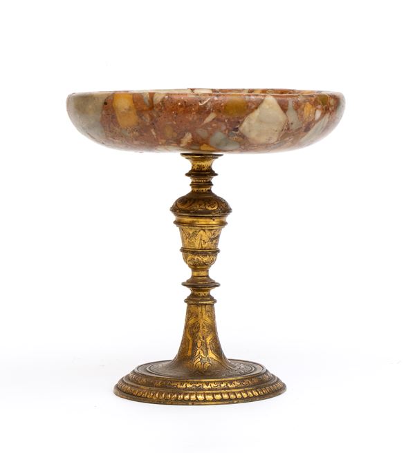Alzata in bronzo e marmo brecciato policromo, Italia, XIX secolo