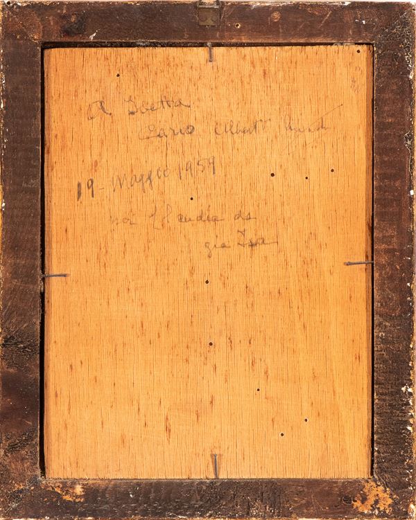 Altezza x larghezza tavola: 22 x 16,5 cm.; con cornice: 26 x 21 cm.