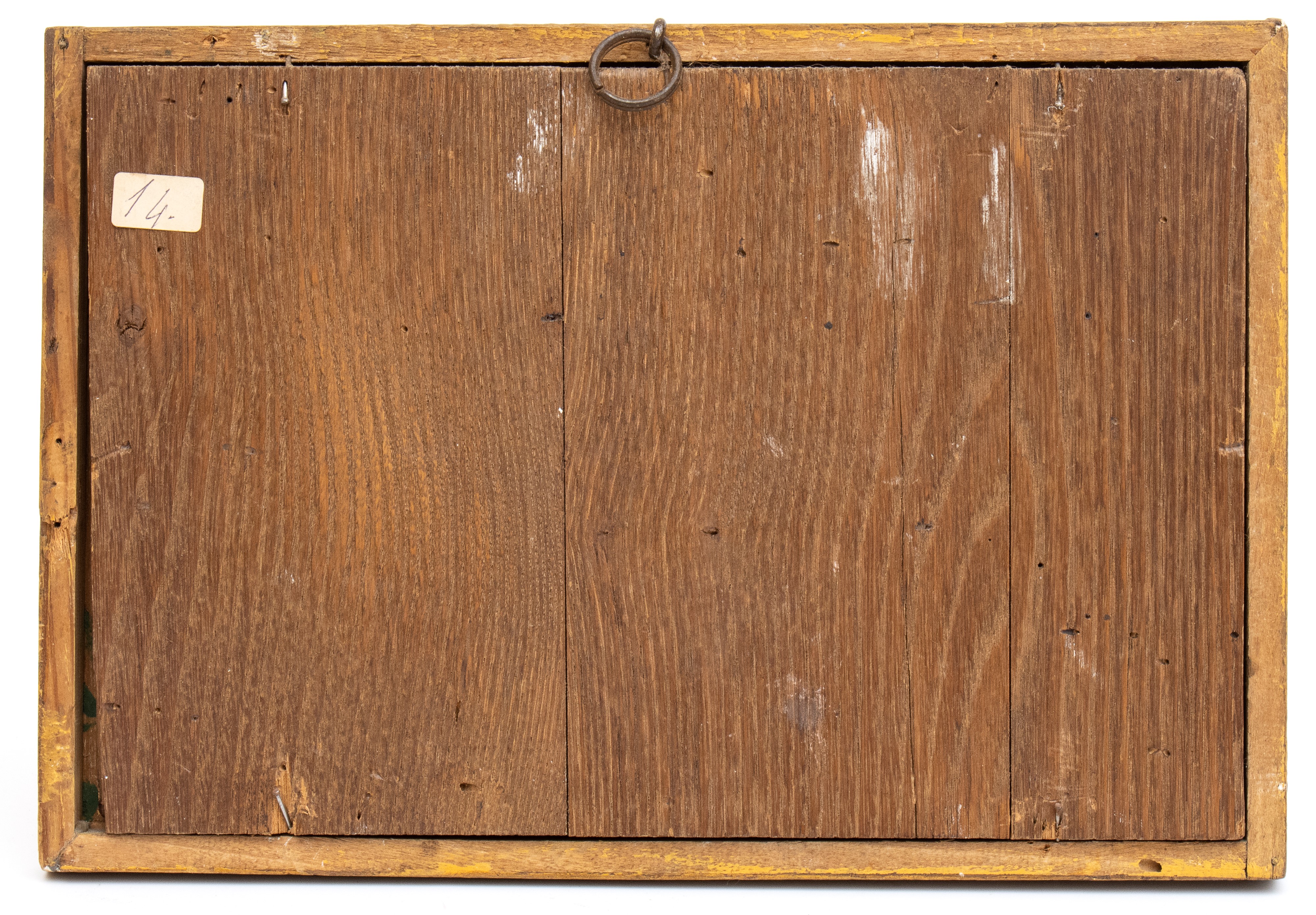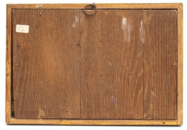 Altezza x larghezza con cornice: 18 x 28 cm. Altezza x larghezza tavola: 17 x 25 cm.