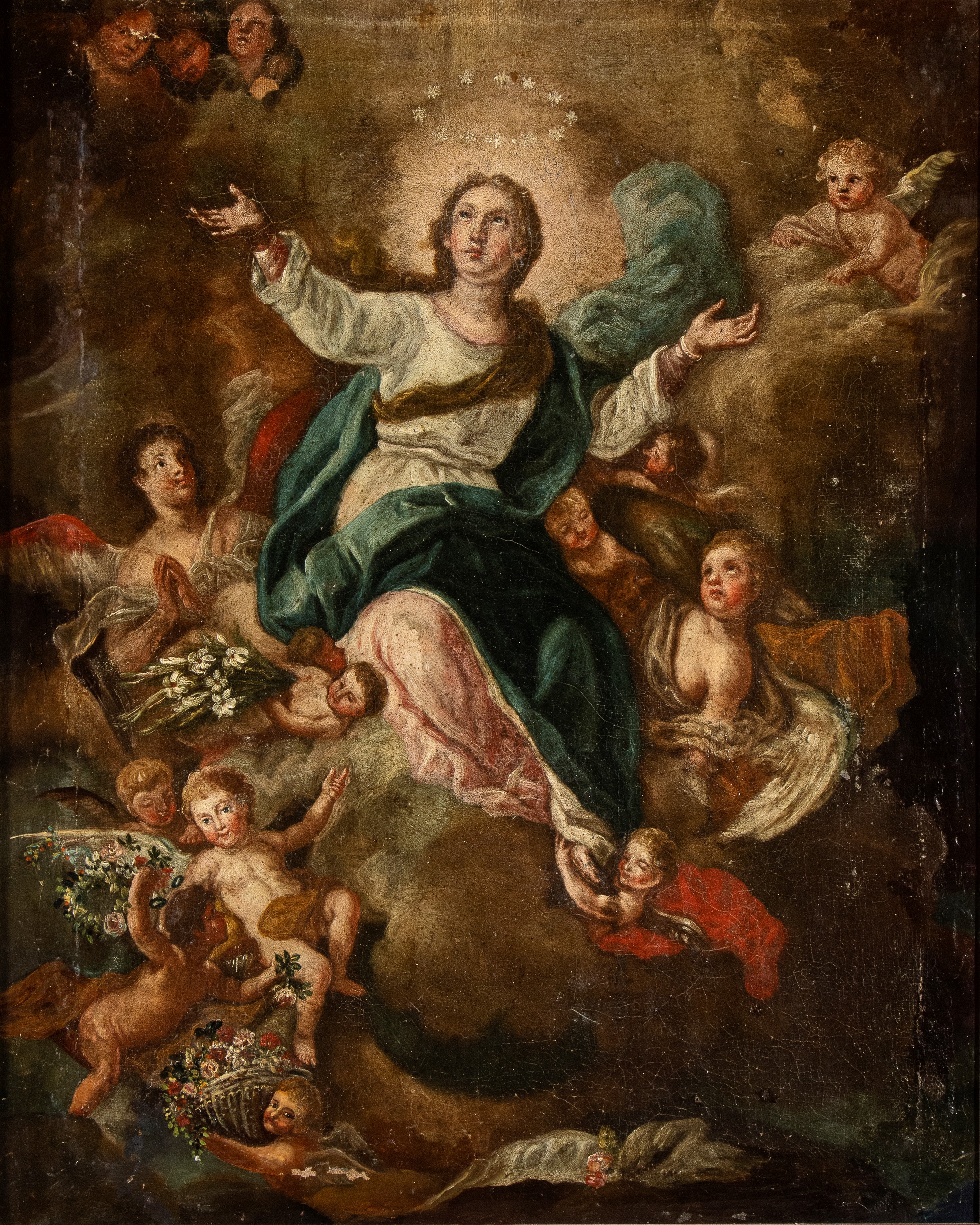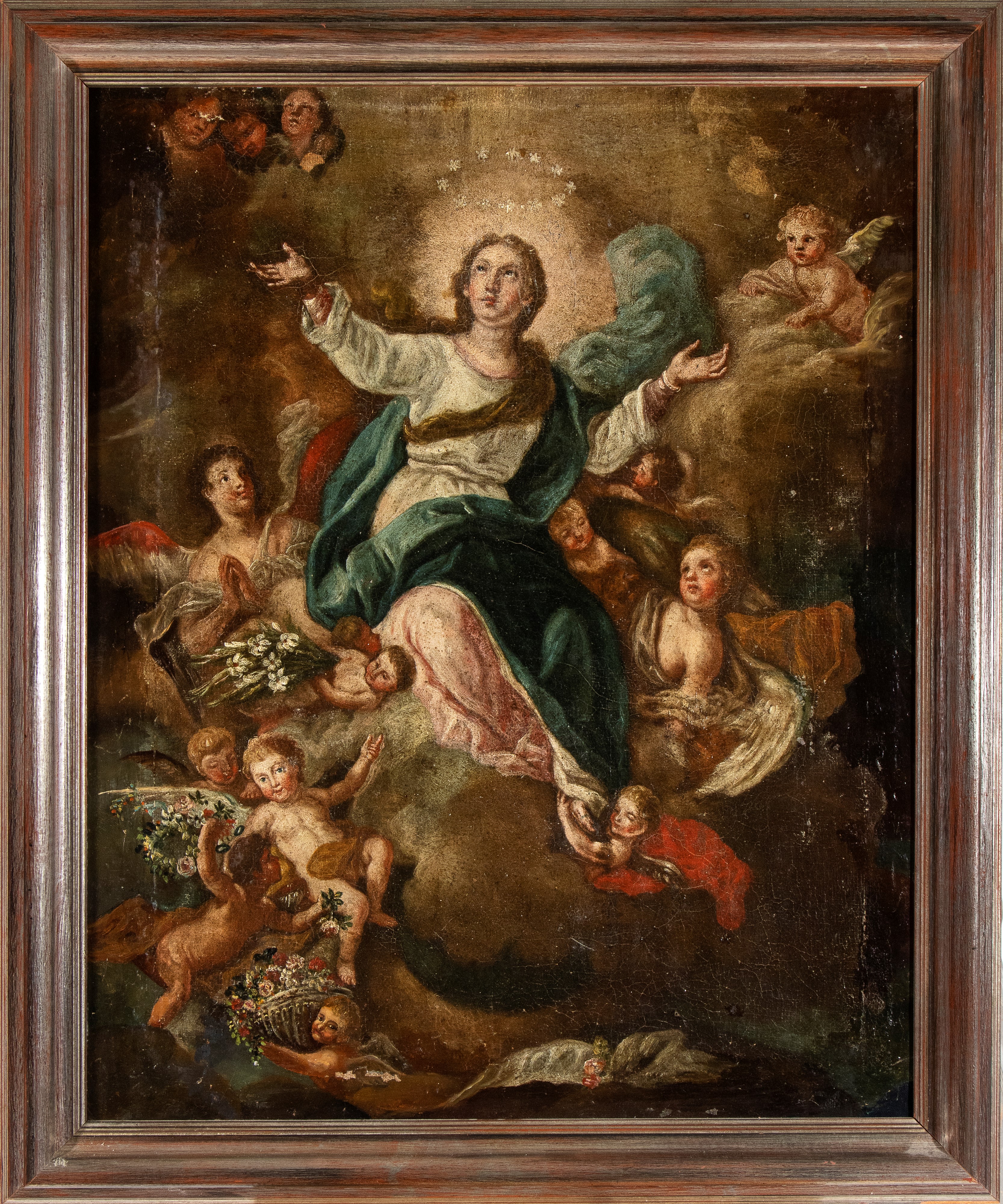 Altezza x larghezza con cornice: 86 x 72 cm. Altezza x larghezza tela: 75 x 60 cm.
