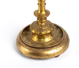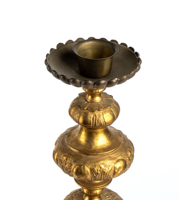Candelabro in ottone con base legno dorato, Italia, XIX secolo