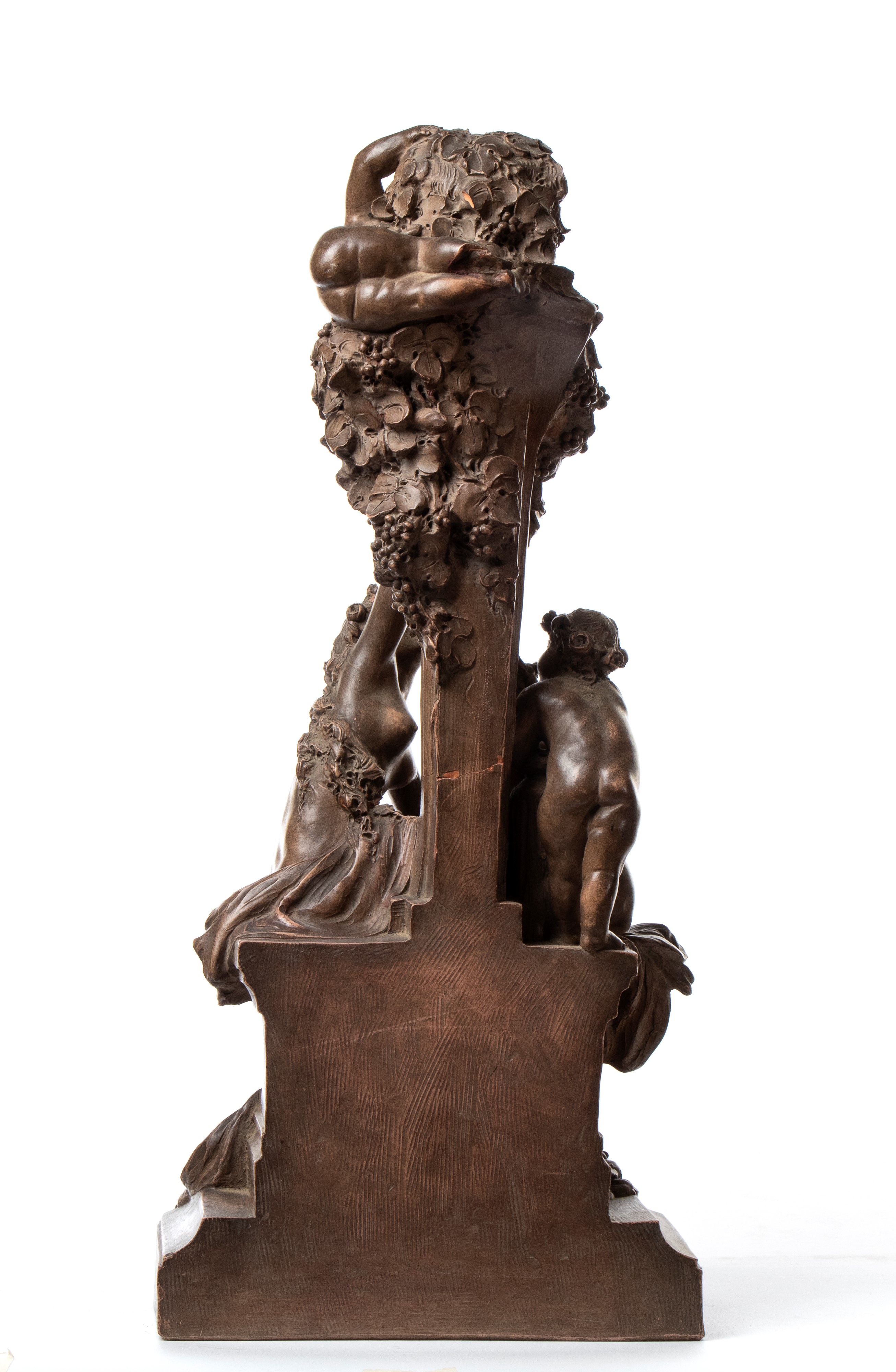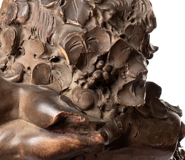 Grande figura in terracotta raffigurante Bacco e una giovane donna, XIX secolo