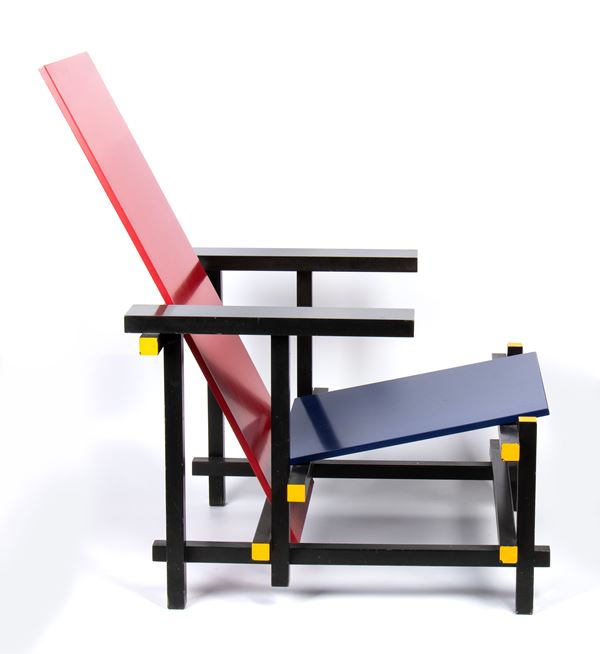 Red & Blue è una poltrona di design dalle forme geometriche e razionali disegnata nel 1918 da Gerrit Thomas Rietveld, esponente del Neoplasticismo promosso dal movimento olandese De Stijl.