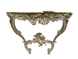 in stile Rococò, finemente scolpita con motivi floreali. Piano in marmo coevo.