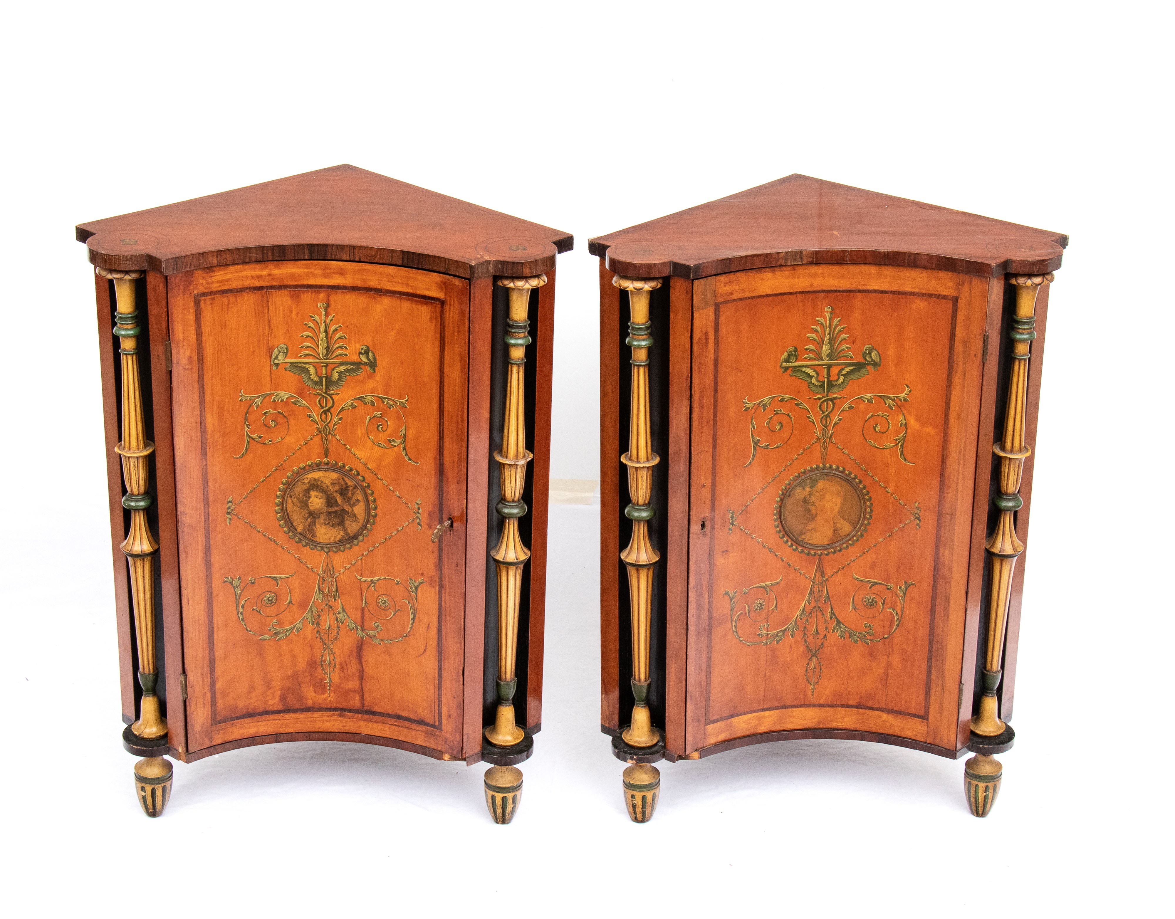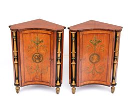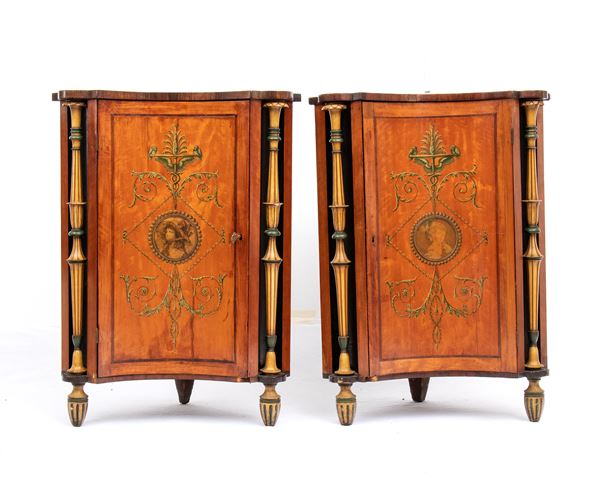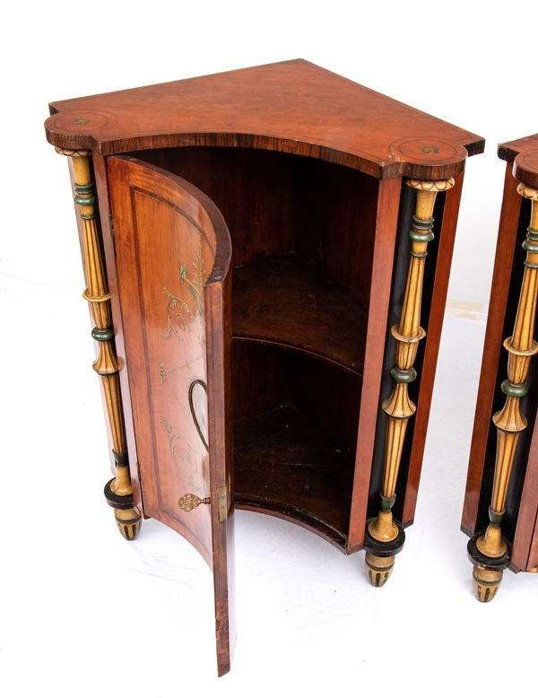 Coppia di angoliere inglesi dipinte in stile Adams, XIX secolo
