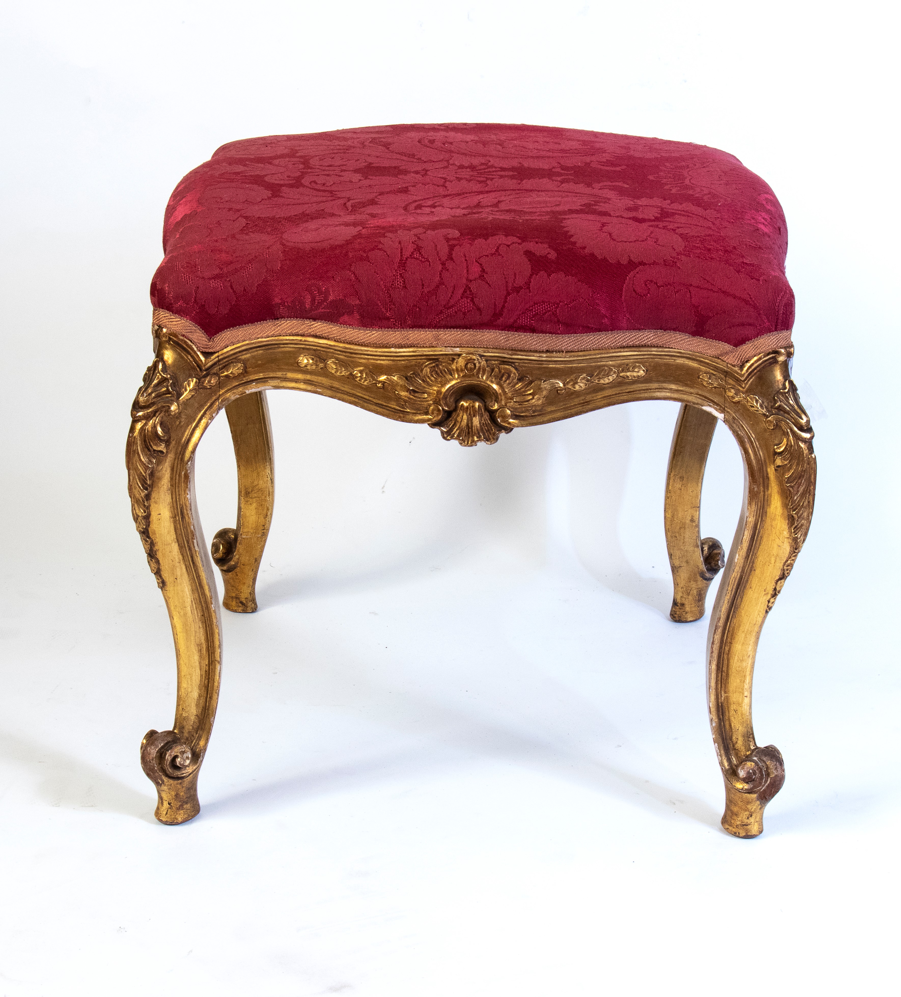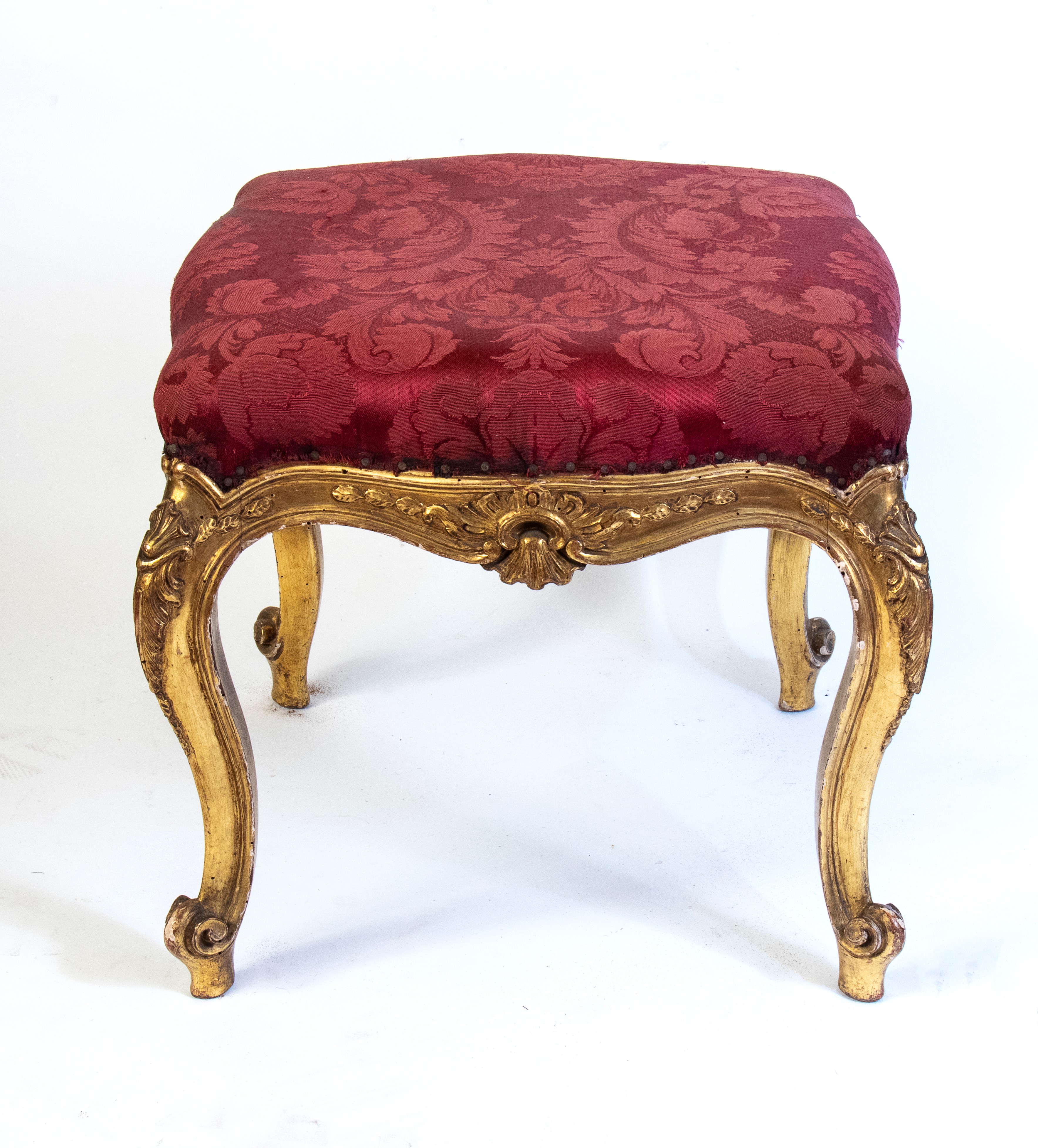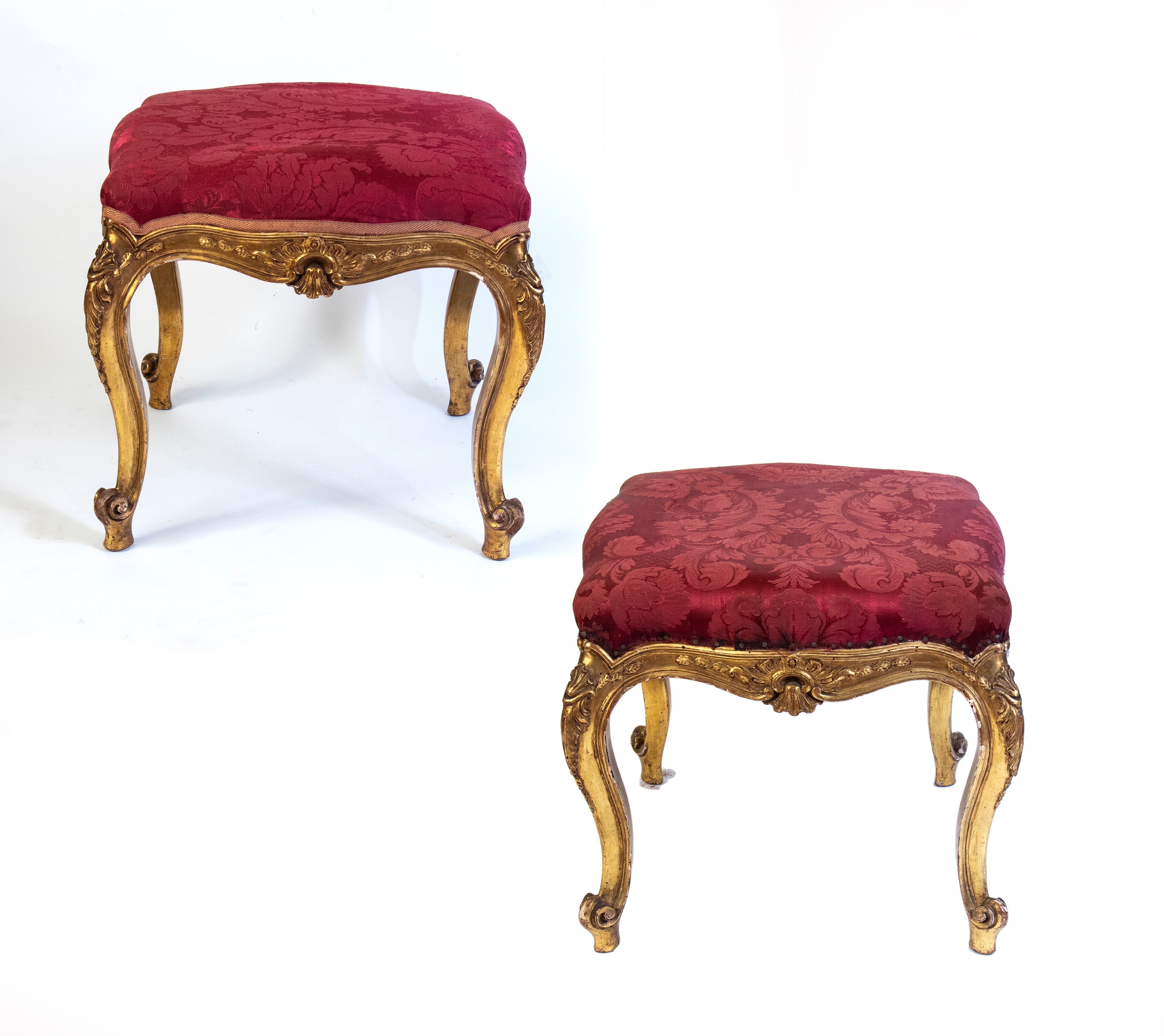 Coppia di panchetti dorati in stile Luigi XV, Italia, XIX secolo