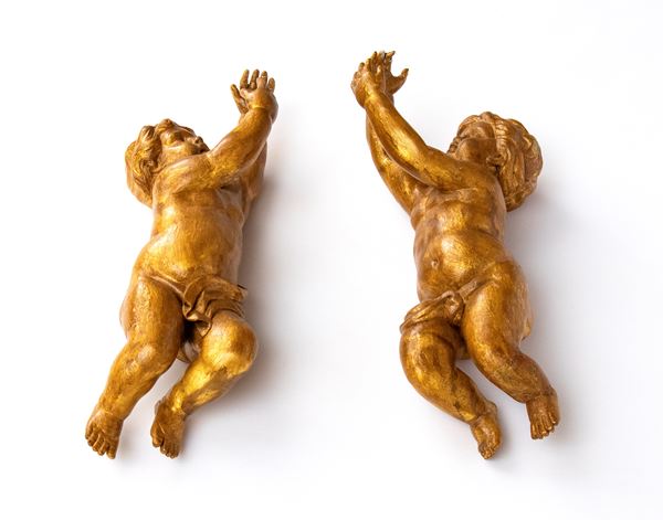 Coppia di putti dorati Italiani, Luigi XVI, XVIII secolo