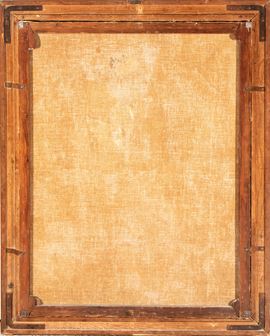 copia di un'opera di Guido Reni, il santo è ritratto con i suoi attributi iconografici classici, il mantello rosso e un lungo bastone. Cornice non coeva.