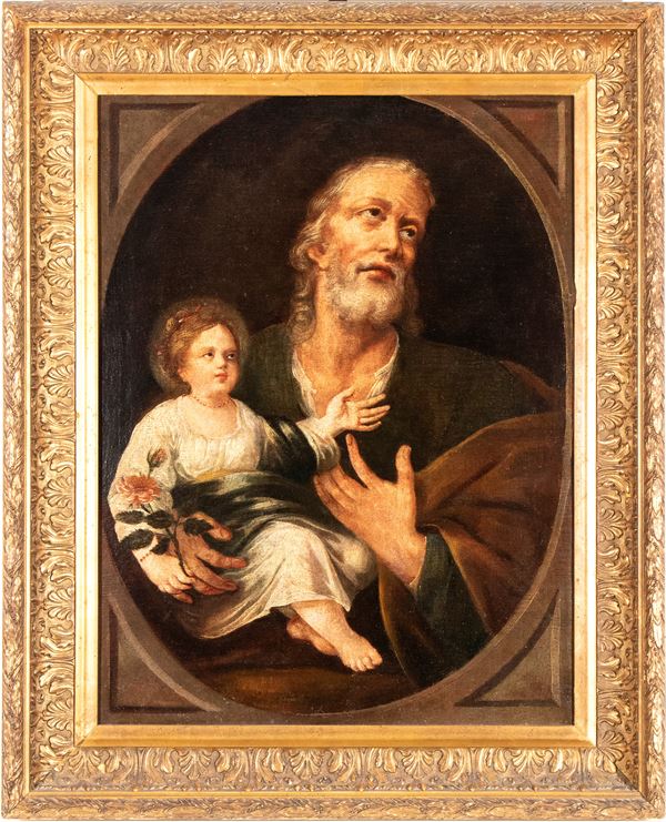 Dipinto raffigurante San Giuseppe e Gesù bambino, Italia, XVIII secolo
