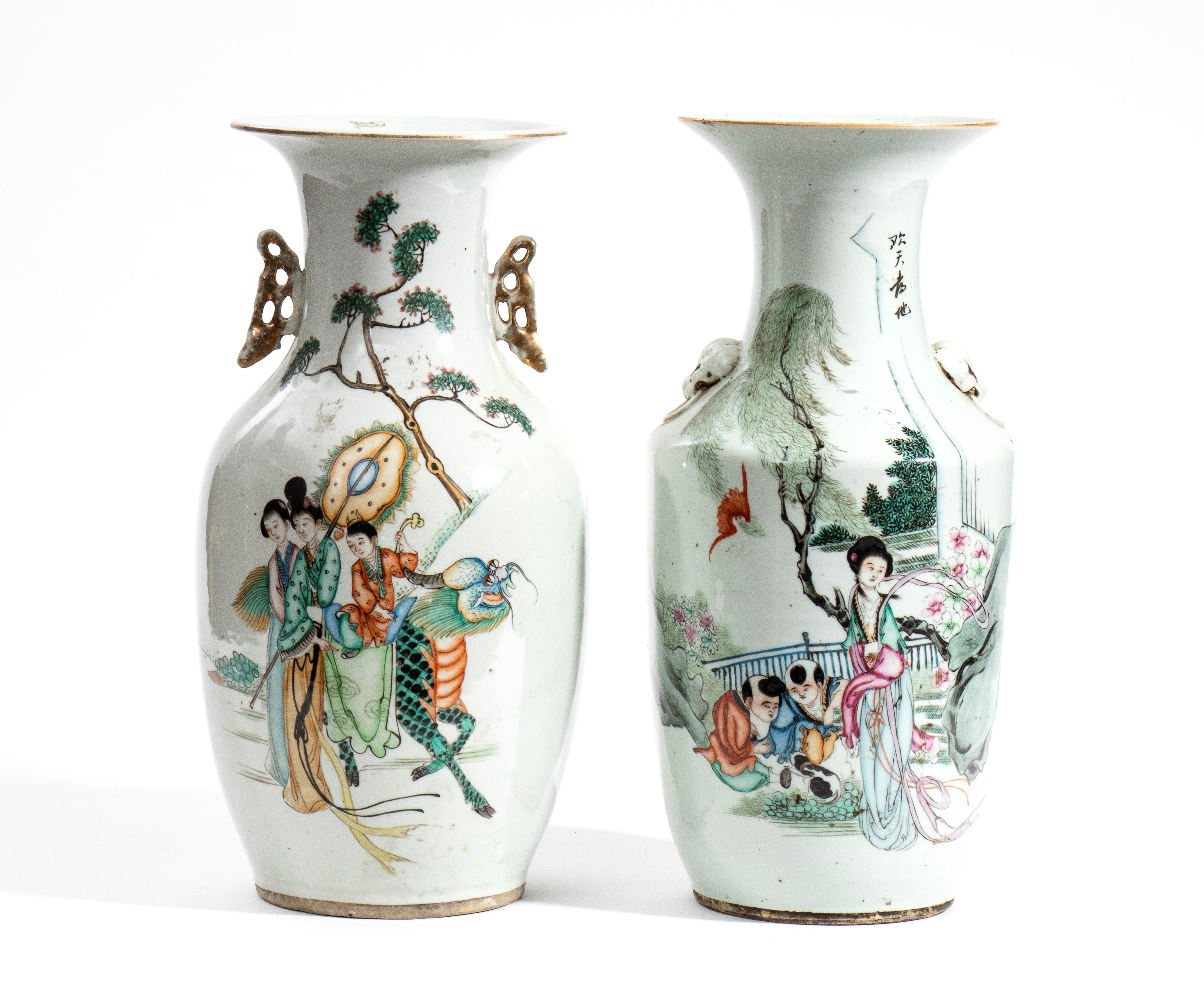Due vasi in porcellana dipinta, Cina, XIX secolo